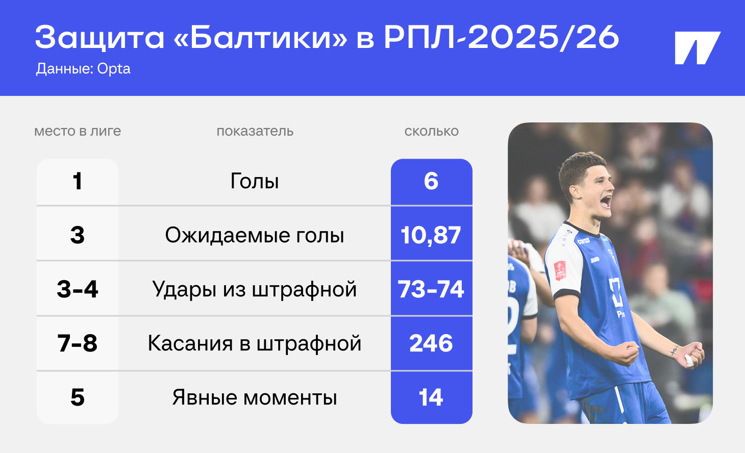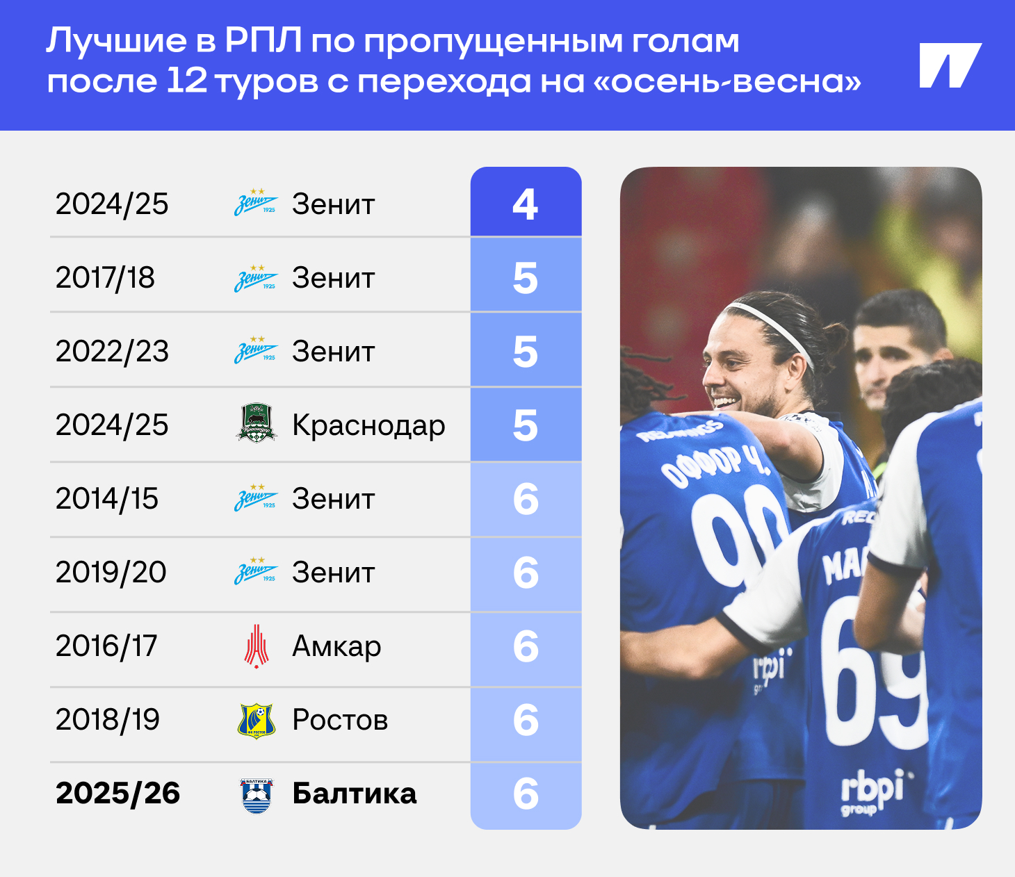 «Балтика» пропустила всего шесть мячей после двенадцати туров: за последние 13 лет лучше стартовали только «Зенит» и «Краснодар».