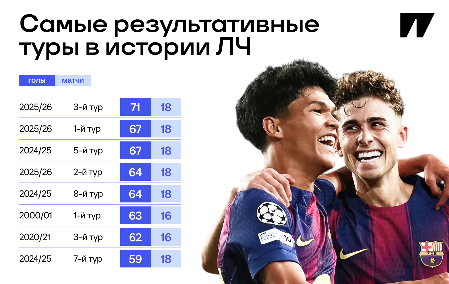 В прошлом сезоне уже установили новый ориентир по результативности. В пятом туре команды за 18 матчей наколотили 67 мячей. Тогда зажигали «Атлетико» и «Аталанта»: забили по шесть «Спарте» и «Янг Бойз». В первом туре этого сезона повторили, но не превзошли.