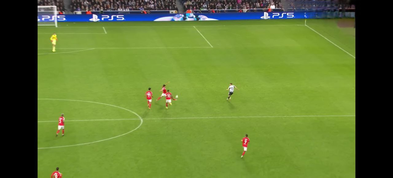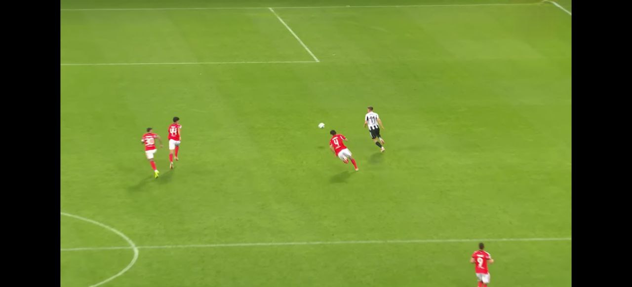 Тут видно как уже на этом этапе Харви начинает выигрывать расстояние, игроки Бенфики проспали вспышку.