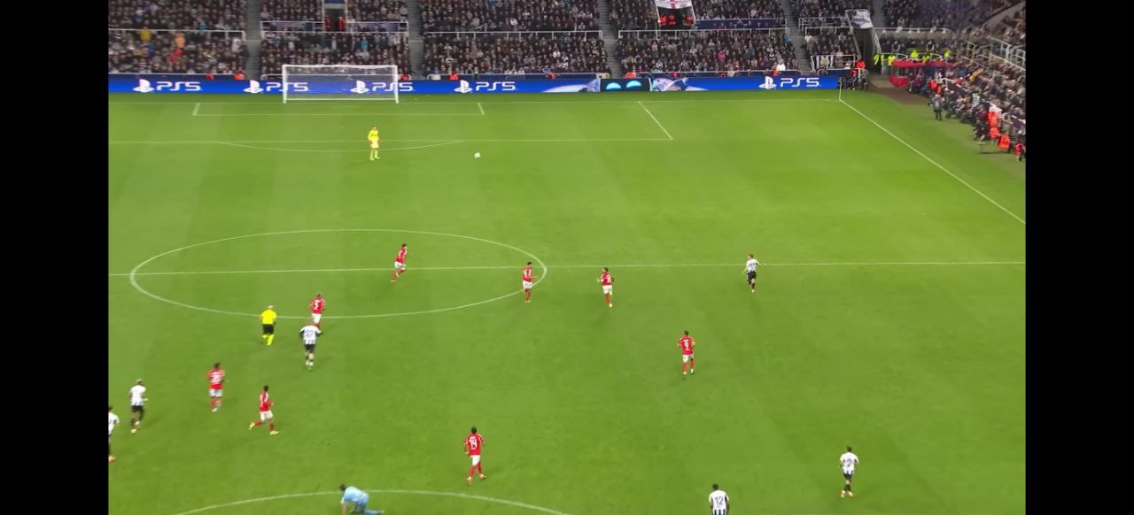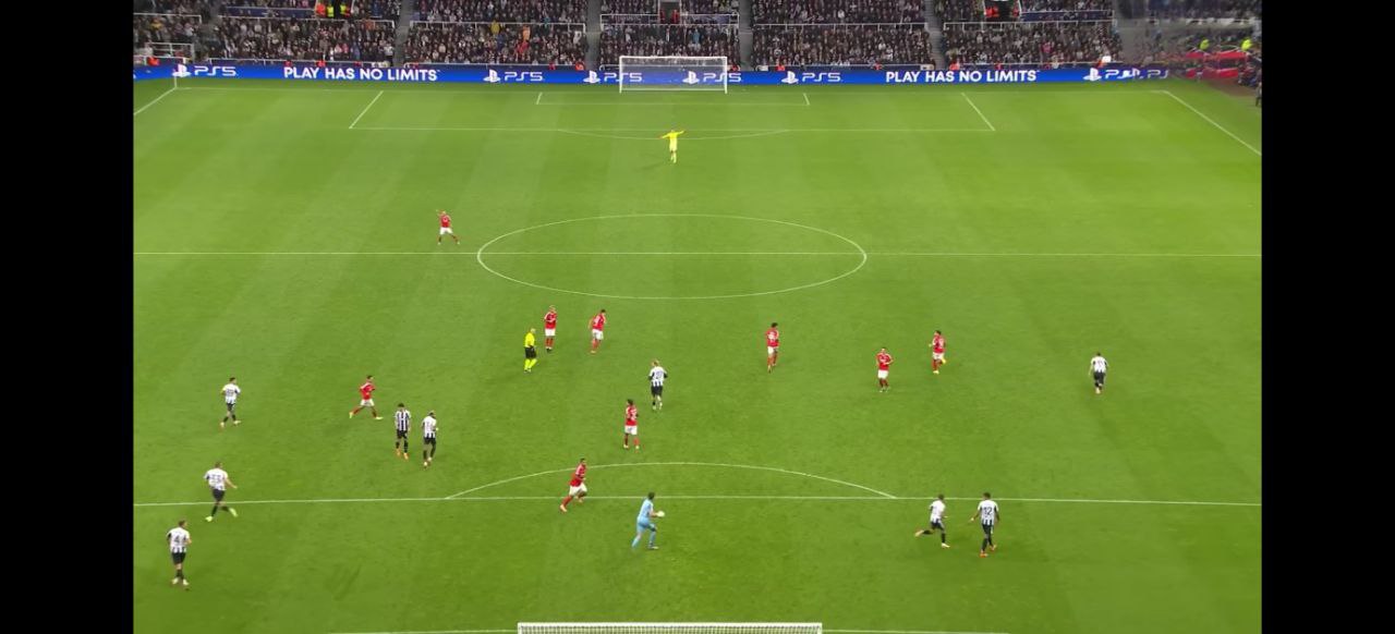 Игроки Ньюкасла даже не думают бежать в контатаку, за исключением Харви Барнса, который начинает рывок. Перед Барнсом целый гектар свободного фланга, можно сказать дальневосточный гектар. И тут должны были сойтись два фактора: скорость Барнса и умение вратаря быстра и далеко вводить мяч. С обоими аспектами оказался полный порядок.