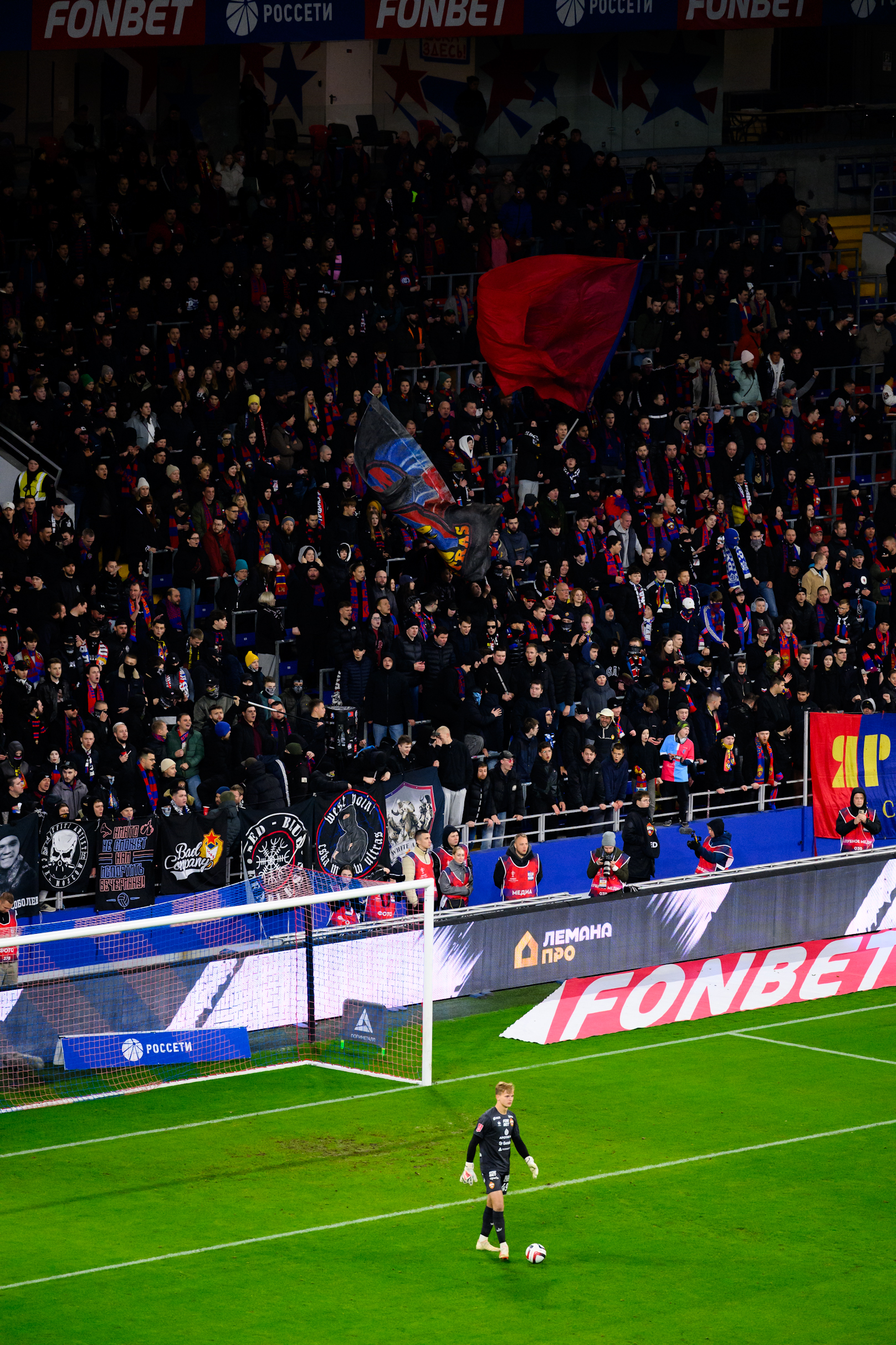 А посмотреть на молодежь, которой бесконечно хочется доказать всем и вся свою крутость всегда приятно! Так вот я лежал, сидел, стоял да смотрел первый тайм, почти не шевелясь, а лишь наслаждаясь абсолютным недопониманием игроков между собой. Не только нашими, там и «Акрон» не отставал, играя по принципу «Бей вперед – игра придет». Первые полчаса игра шла под давлением «Акрона» – мы выступали только на контратаках. Без моментов с обеих сторон. Показательным моментом стало вью во время матча с Николаем Баровским, вратарем ЦСКА, отлично себя показавшим в ходе братского дерби летом 2025 г. «Мы не вошли в игру», – сказал Николай после 20 минут игры, при этом выразив свою уверенность в общем исходе.