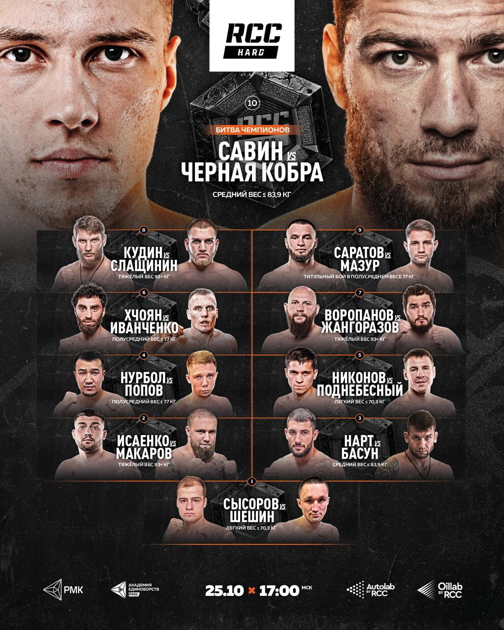 RCC Hard x Top Dog: Савин vs Черная Кобра. Полный кард турнира, где смотреть?
