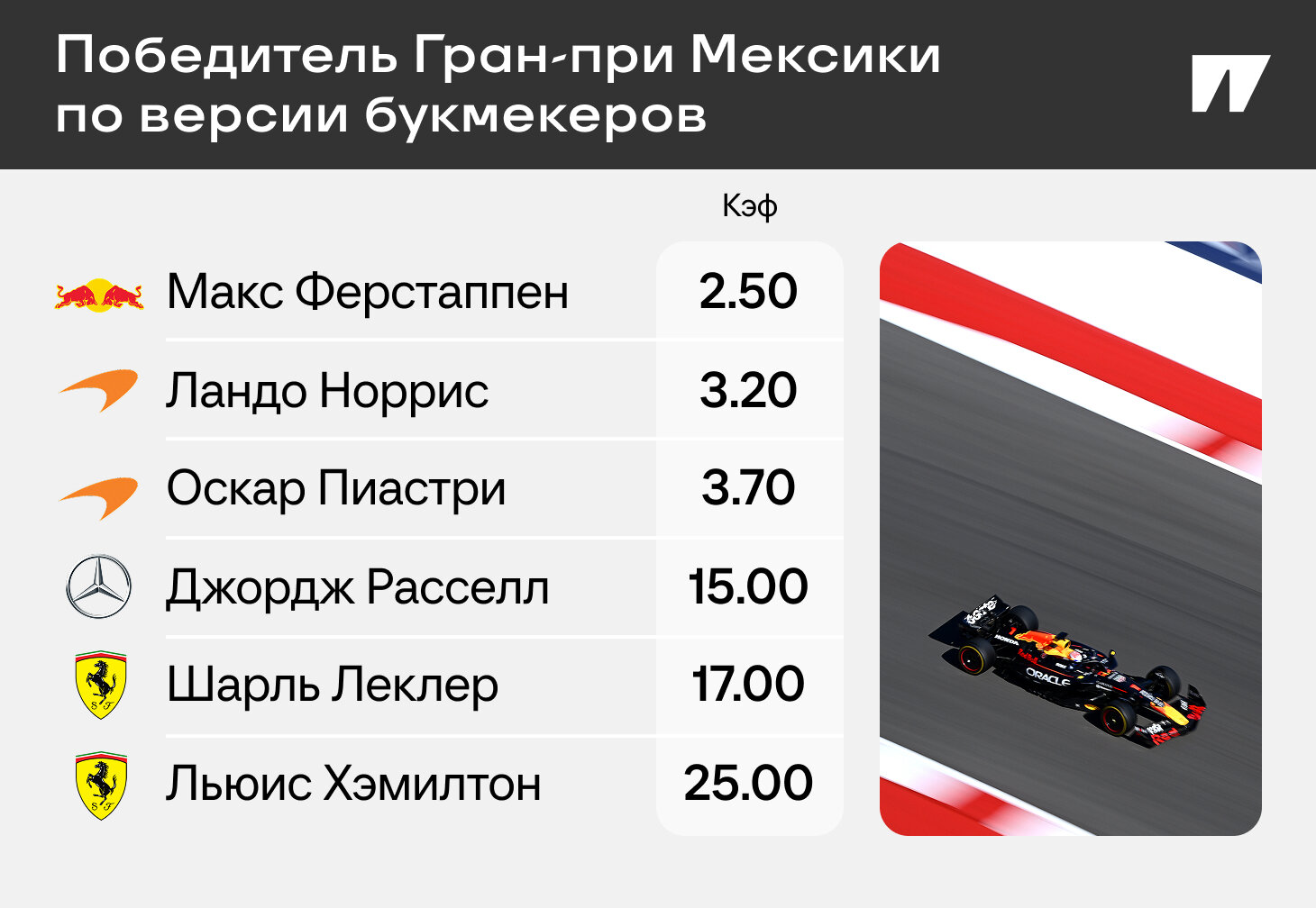 В последнее время от этого отвыкли, но теперь Ферстаппен – снова фаворит предстоящей гонки. Вот как было на нескольких предыдущих: в Италии и Азербайджане на его победу давали не более 20%, в Сингапуре было 28%, а в США – 33%. В Мексике теперь – 40%.