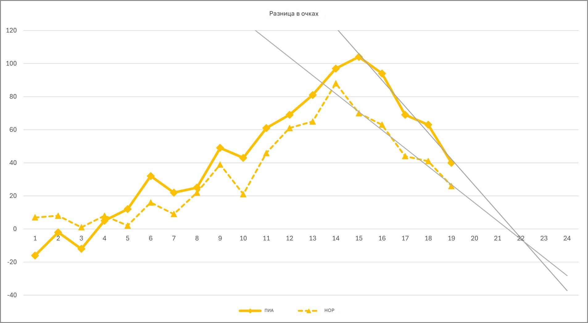 Хотя, с другой стороны, при том же темпе отыгрыша очков Макс настигнет пару «Макларенов» уже на 22-м этапе!