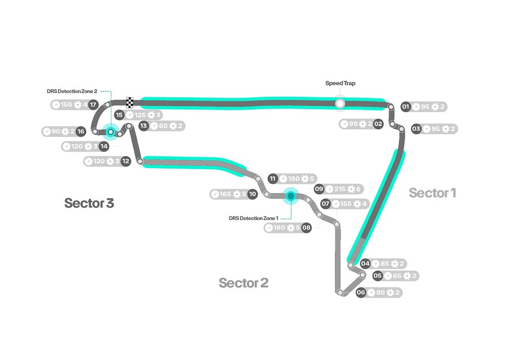 Такой расклад обычно требует разгрузки машины от прижимной силы, но с учетом расположения на 2286 метрах над уровнем моря эффективность аэрообвеса и так падает на четверть, потому выбор настроек и баланса для Мексики – один из самых сложных в календаре. Навертеть антикрылья побольше и проиграть на прямой длиной аж 1,2 км? Поставить антикрылья поменьше, но скользить в поворотах, перегревать шины и страдать в гонке? Очень много вопросов!