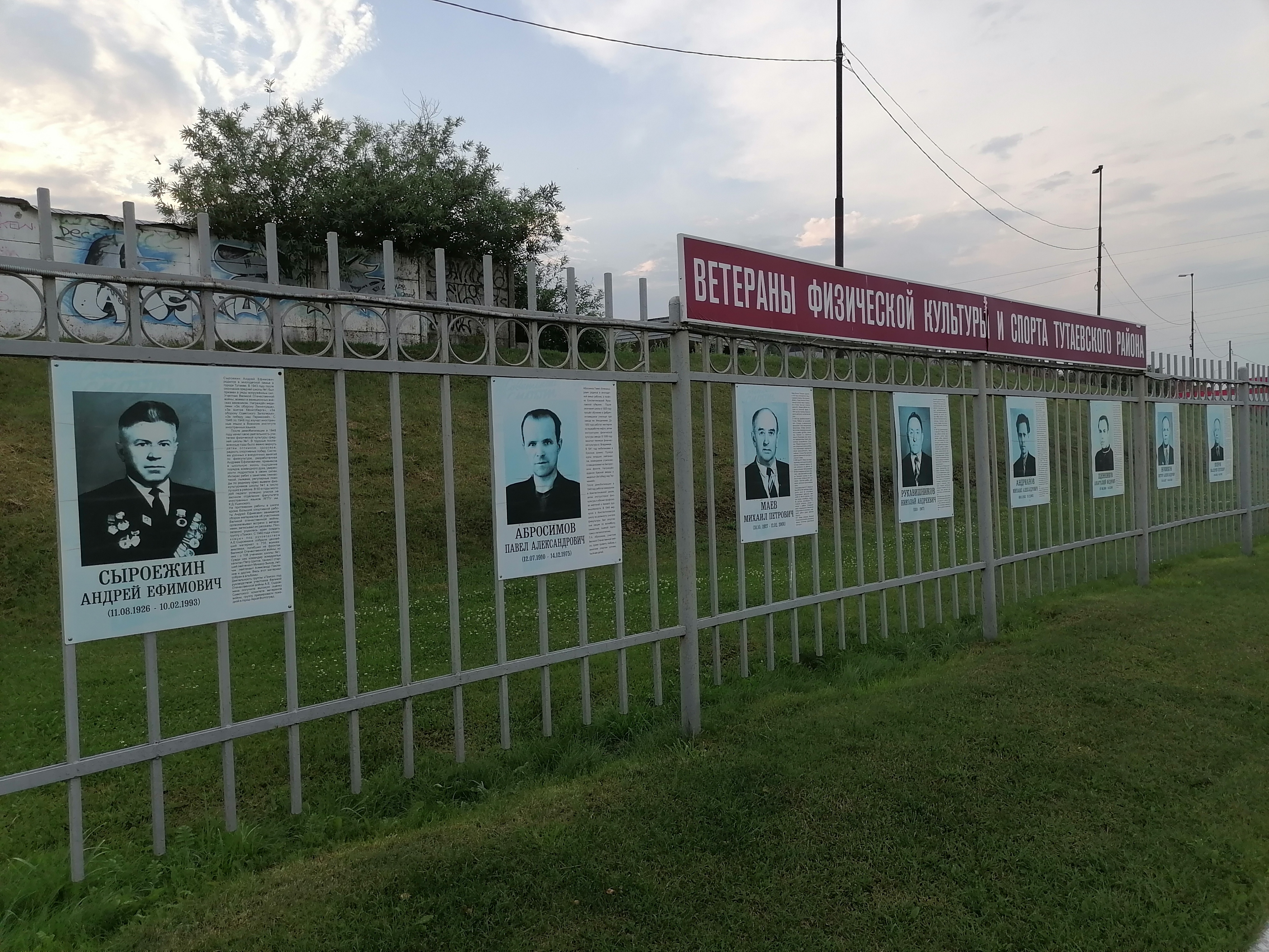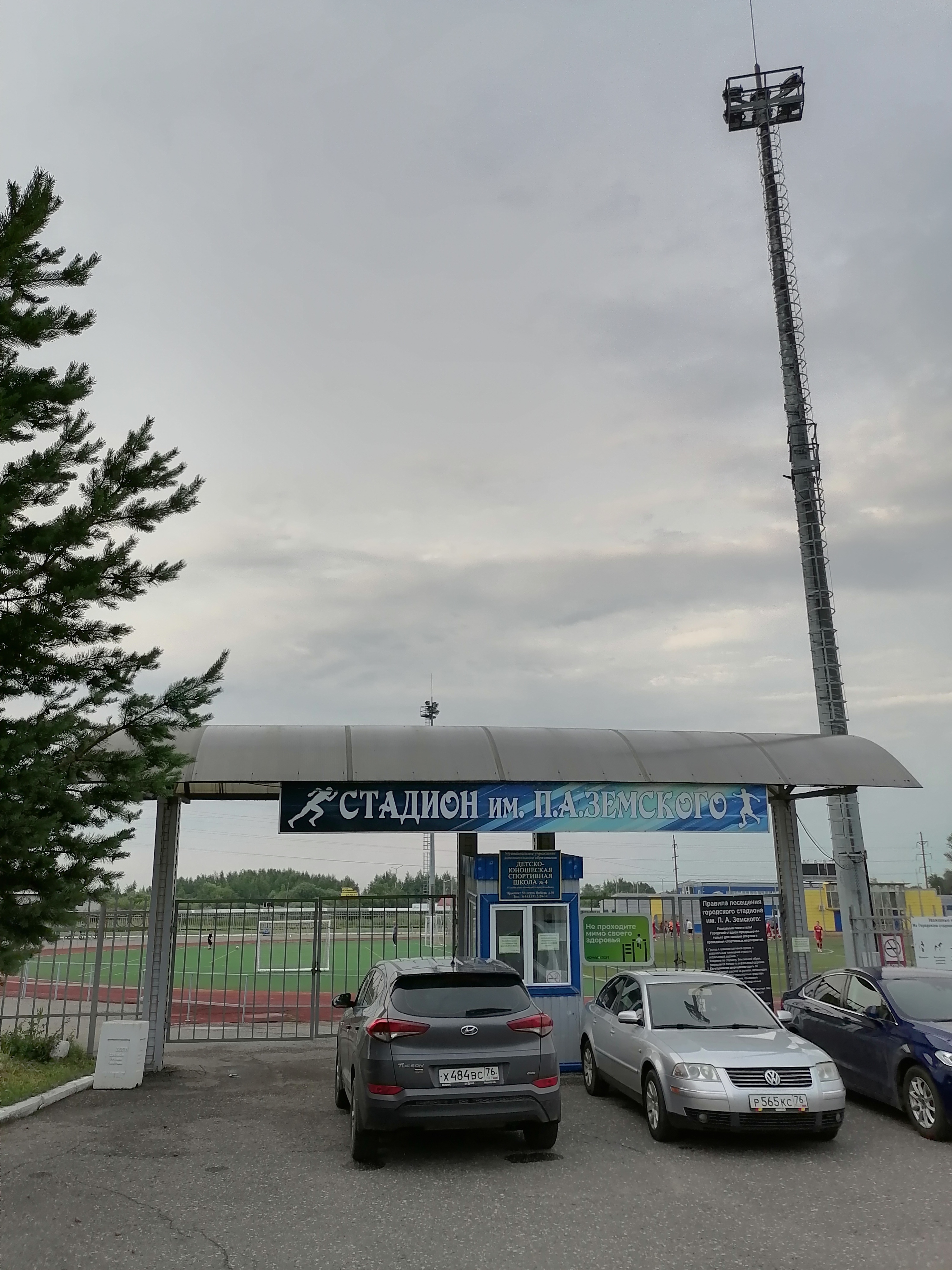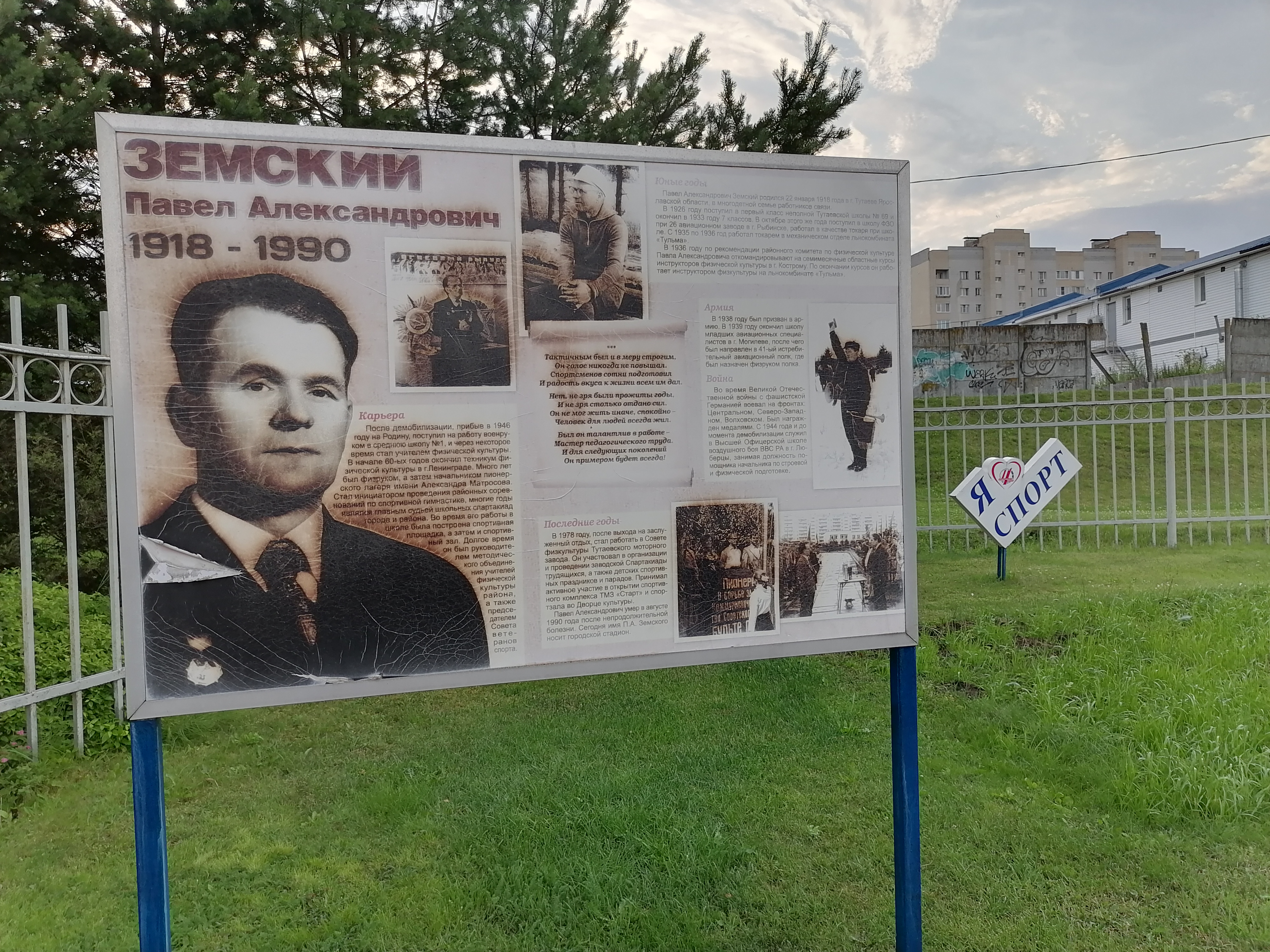 У нас есть несколько минут, чтобы прогуляться по стадиону. Стадион назван в честь Земского Павла Александровича – уроженца Тутаева, фронтовика и энтузиаста массового спорта в родном городе. Подробнее можно ознакомится по ссылке.