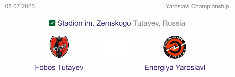 В рамках Чемпионата Ярославля по футболу встречаются ФК «ФОБОС» (Тутаев) ФК «Энергия» (Ярославль).