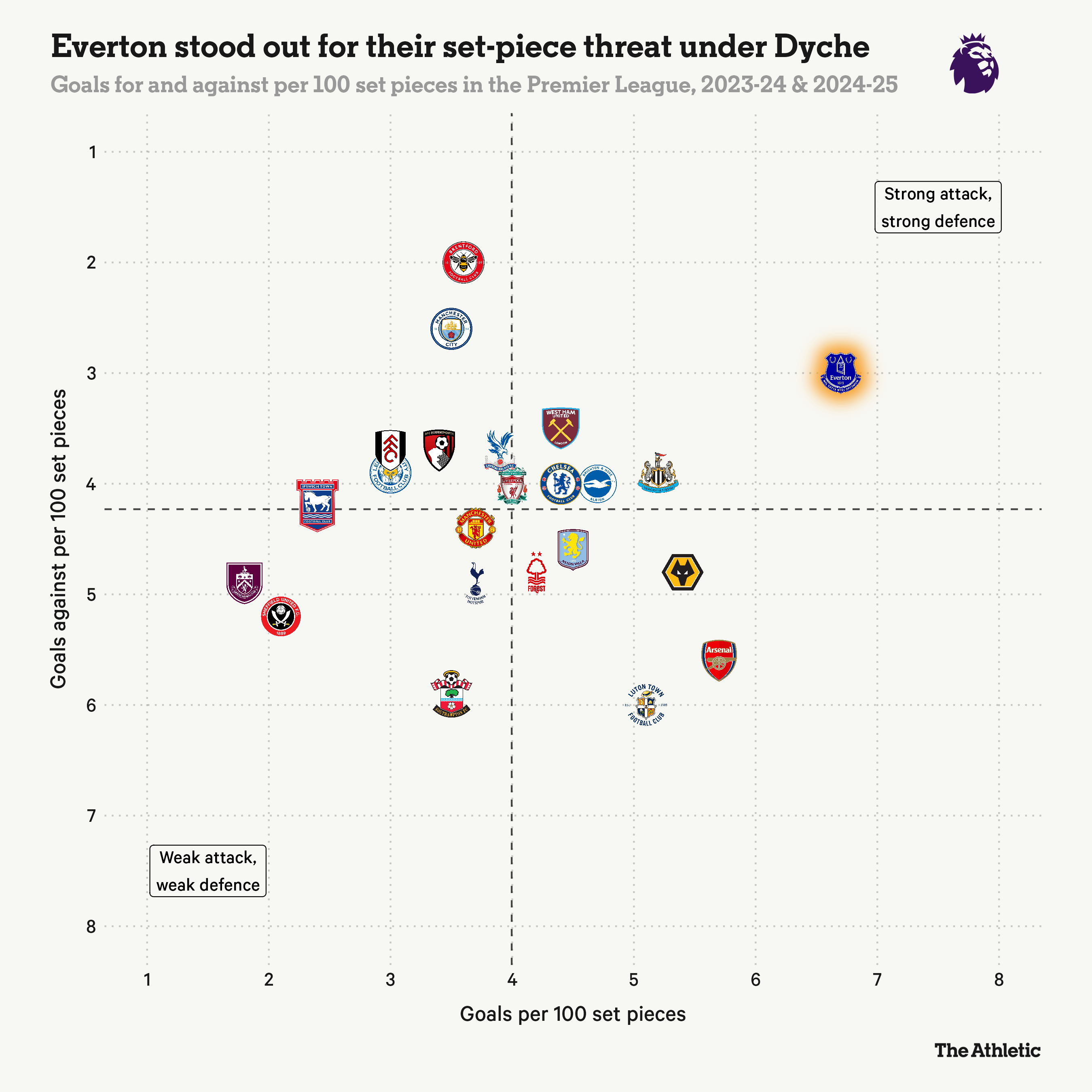 В «Эвертоне» Шон Дайч так же очень активно полагался на стандарты и чужих ворот.