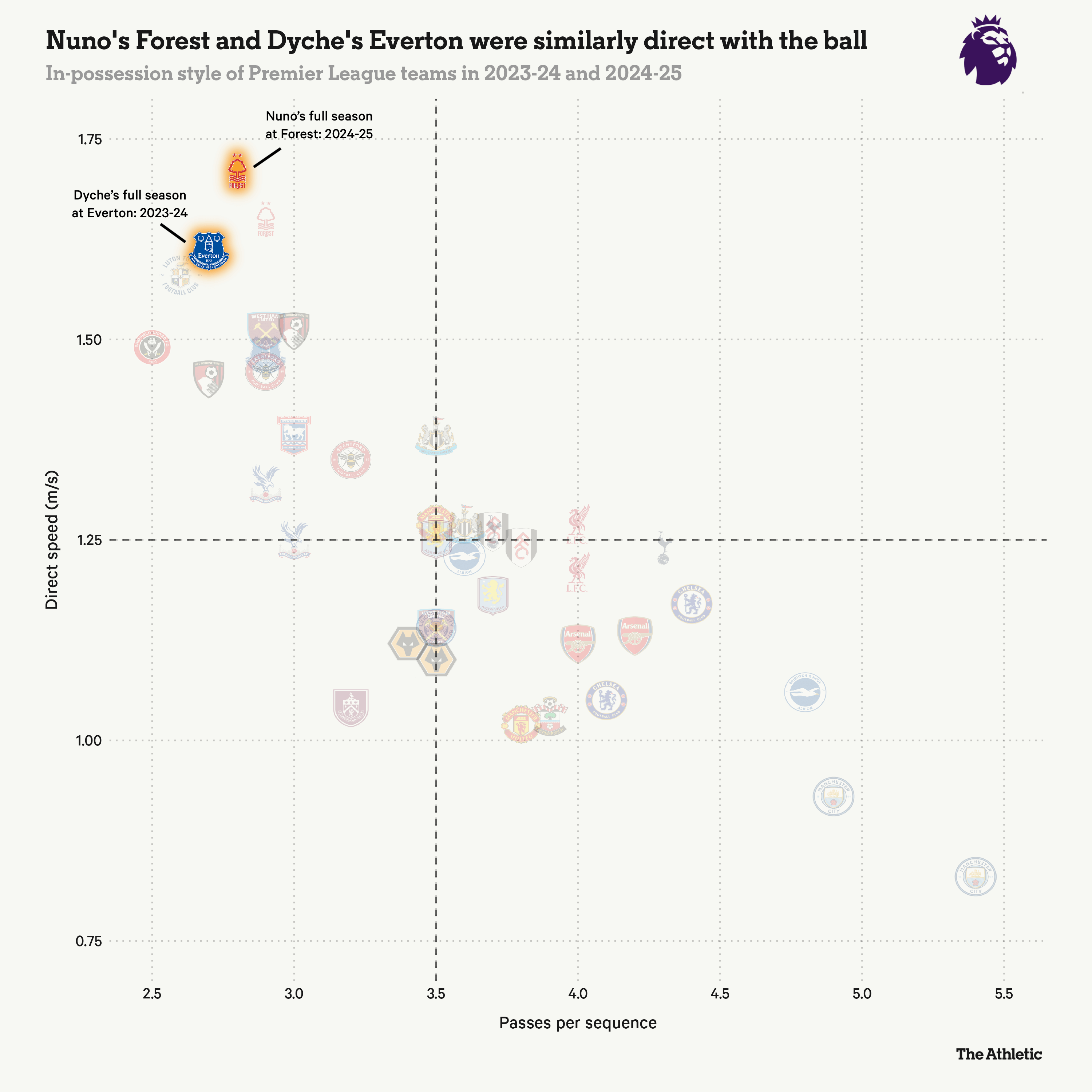 Следующая картинка покажет нам насколько схожи были «Эвертон» при Дайче в сезоне 2023/24 и «Форест» при Санту в прошлом сезоне.