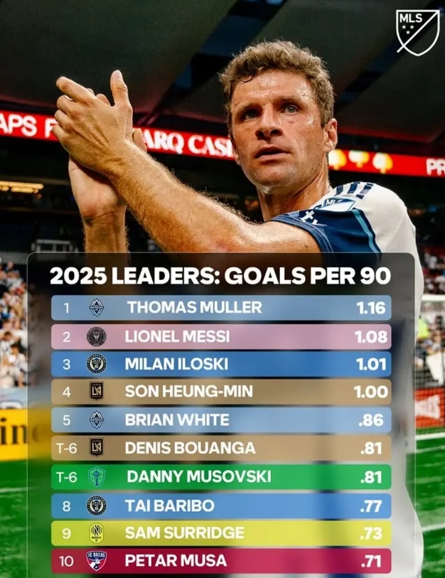 Это даже выше, чем у Лионеля Месси (1,08), несмотря на то, что Лео является лучшим бомбардиром МЛС 2025 года с 29 голами в 28 играх.