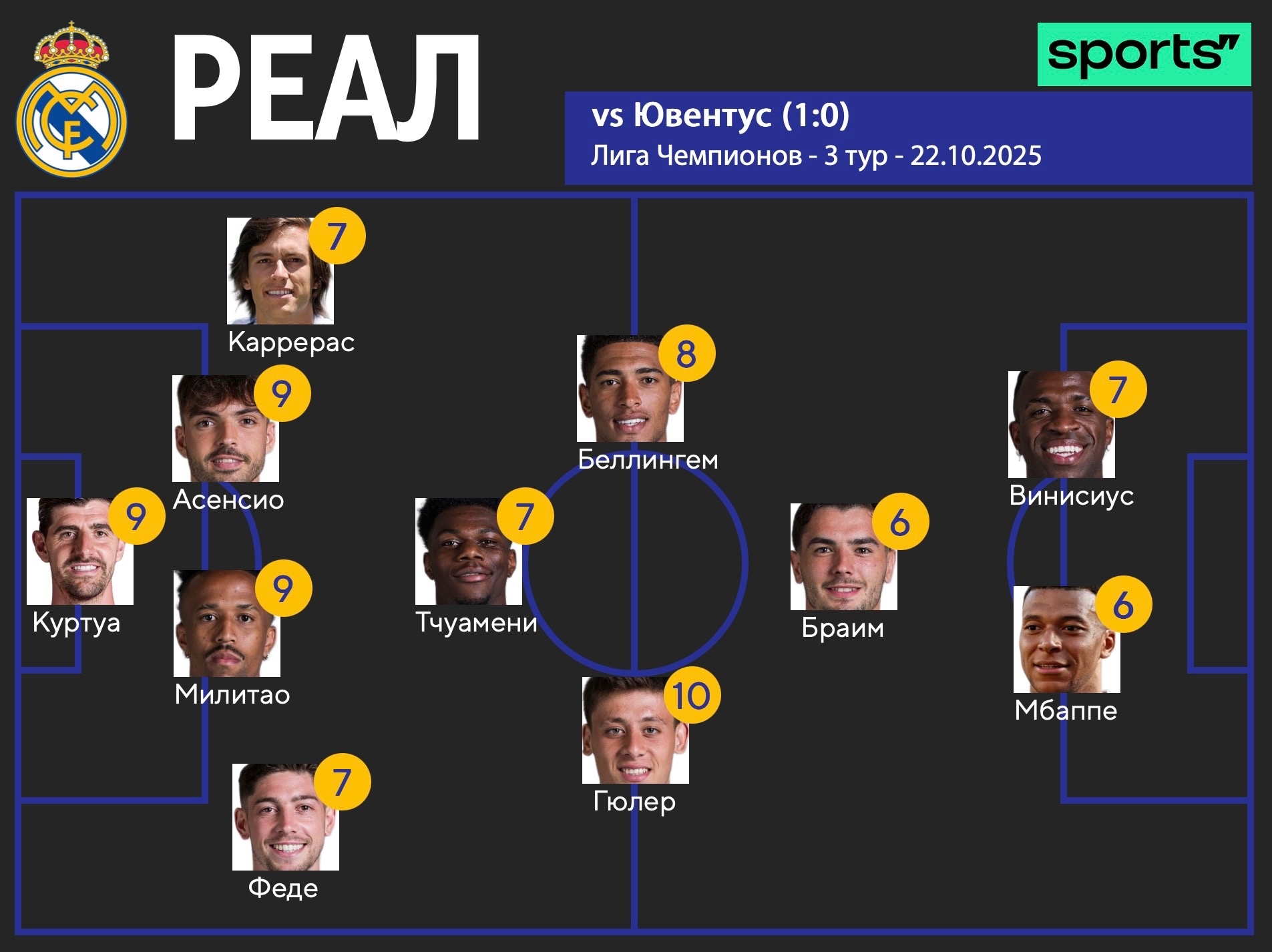 Джуд Беллингем – 8. Забил победный голи был одним из лучших на поле. Очень много работы без мяча и большая интенсивность. Визуально показалось, что Джуд яростнее всех бросался в отборы после потерь команды и замедлял атаки «Ювентуса». Потихоньку набирает форму, но пока нет понимания, какого Джуда мы увидим в Класико.
