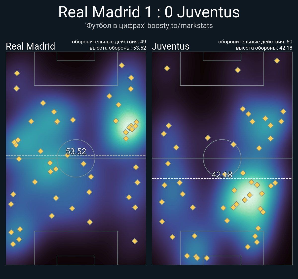 Высоченная линия обороны в сочетании с очень атакующим стартовым составом – Алонсо решил увеличить риски при потерях мяча ради увеличения эффективности своей команды в финальной трети. Он посчитал такой размен против «Ювентуса» рациональным и настаивал на нем в течении почти всего матча, кроме последних 10-12 минут, когда «Реал» опустил линию и перешел в режим контратак.