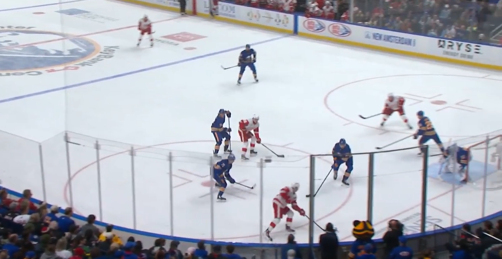 Брандсегг-Нюгард был в центре защитной позиции на синей линии, а затем добровольно решил уехать за самым дальним на картинке игроком. Надеюсь, это не какая-то скрытая стратегия магического «скандинавского» построения – такого балета нам точно не нужно! Желаю норвежцу засесть за просмотр видео-материалов – 0+0 и -4 за 7 игр это не то, чего от него ждут в стане «краснокрылых».