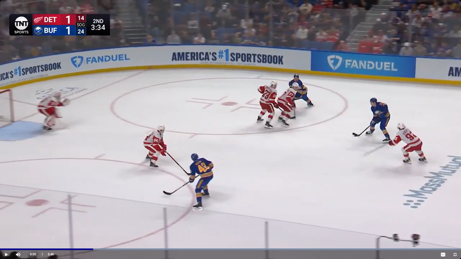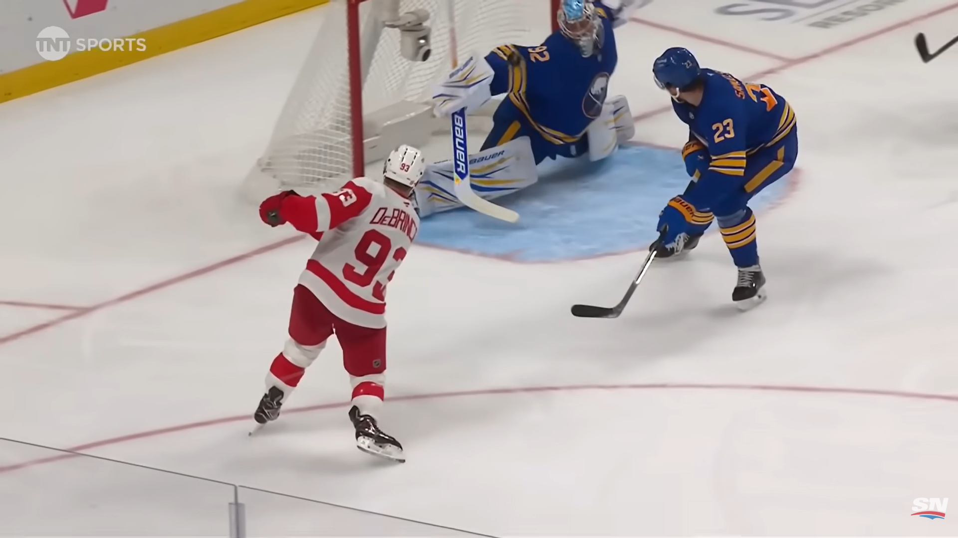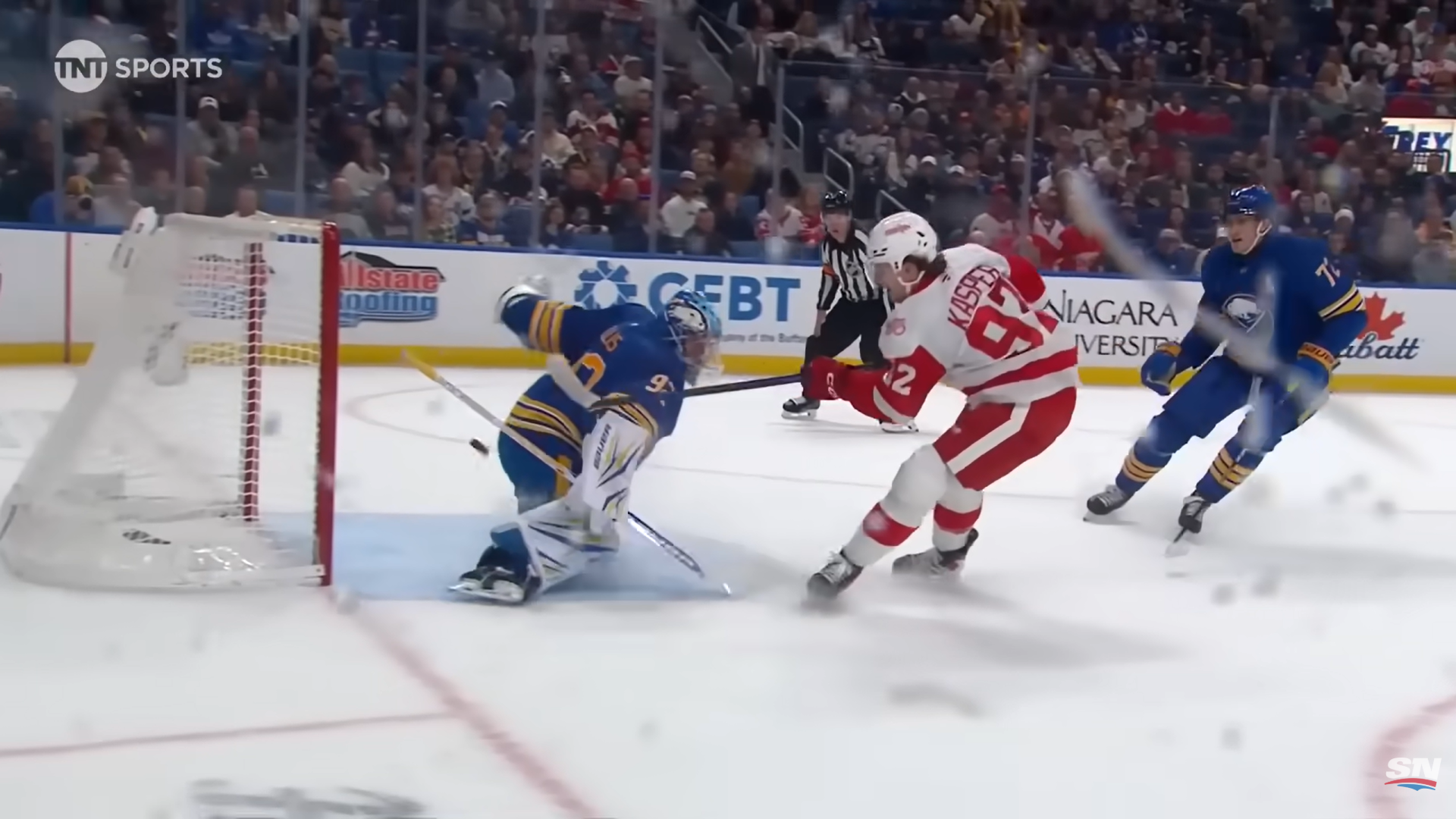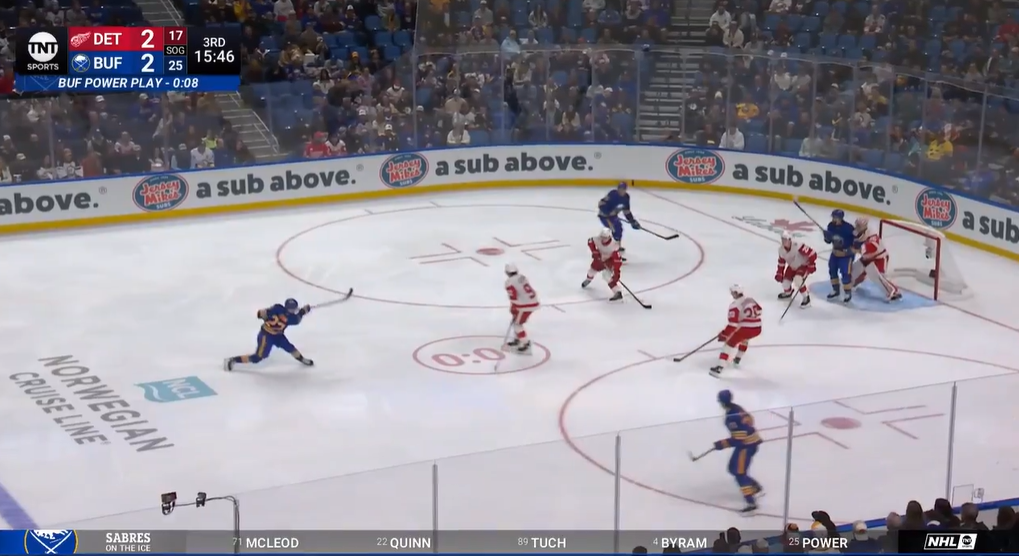 Тем не менее, «Ред Уингс» кое-как пережил этот отрезок – и даже мог выходить вперед, но Каспер не пробил вратаря «Баффало».