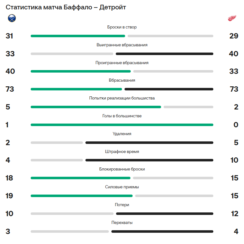Все же, главной звездой матча точно был вратарь «Баффало», без него все сложилось бы иначе. Однако, это не отменяет позорного выступления многих уже упомянутых личностей.