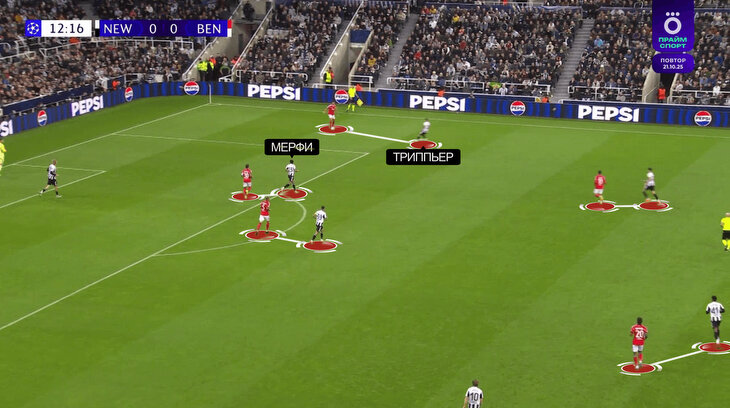 Копирование за «Парижем» – фишка «Ньюкасла» на старте сезона. В первых матчах активнее всех в АПЛ баловались забросами в аут под прессинг при розыгрышах с центра поля. В мелочах, как показывает пример Мерфи, тоже пытаются повторять за лучшей командой Европы.