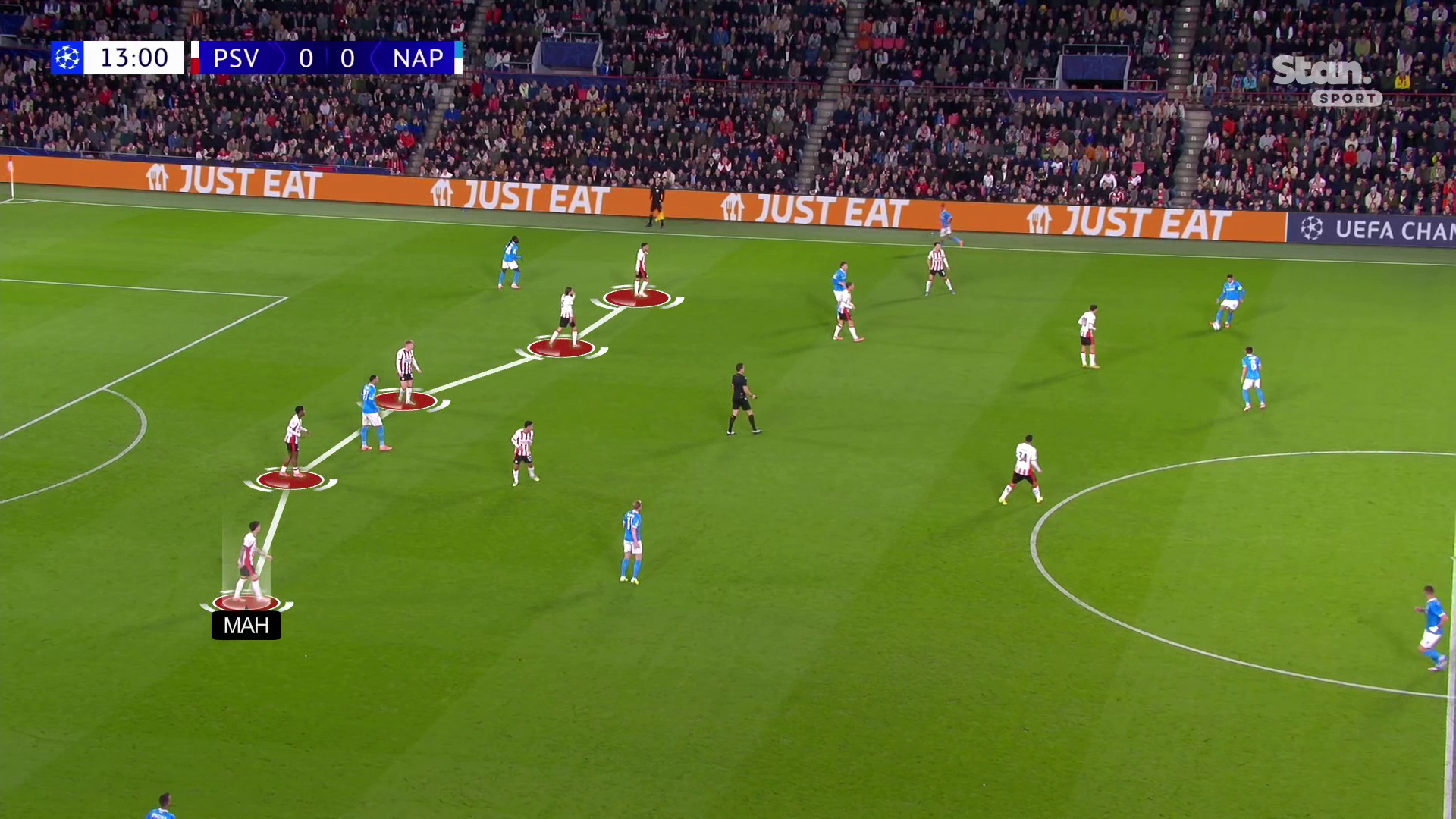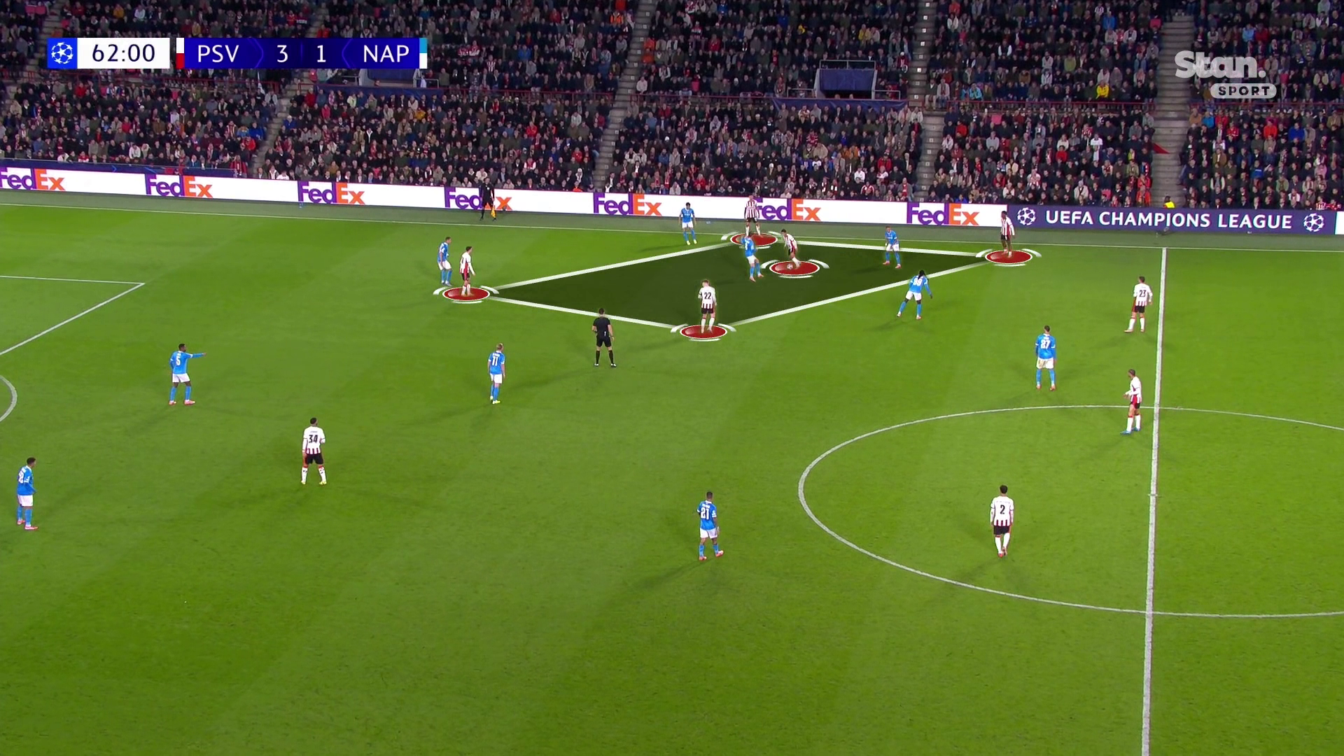 ПСВ просто не давал «Наполи» забрать мяч и начать атаковать. За 22 минуты при 3:1 в равных составах «Наполи» выжал из себя всего четыре передачи на чужой трети поля.