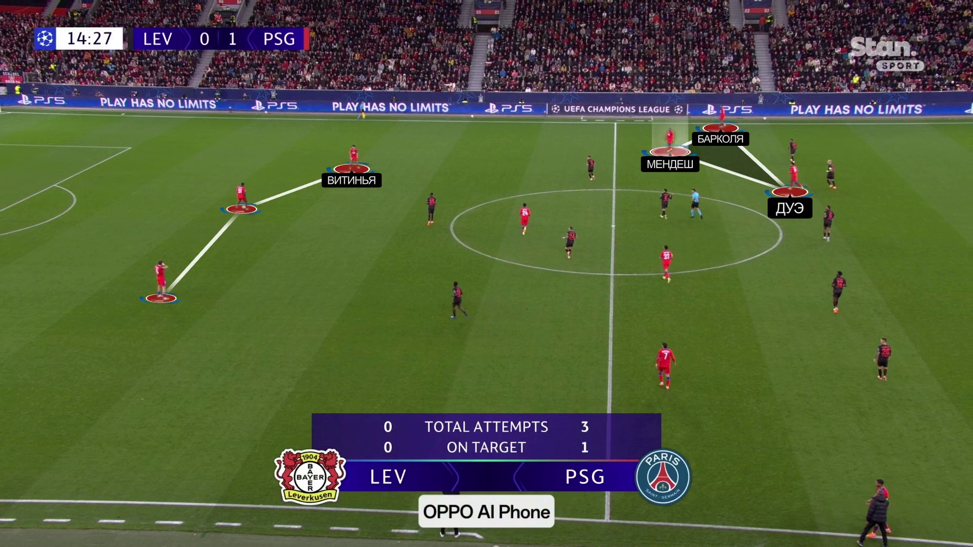 В матче против «Байера» (7:2) Нуну Мендеш отдал голевую после розыгрыша углового, забил гол через открывание в стиле центрального нападающего, организовал предголевую с позиции левого центрального защитника.
