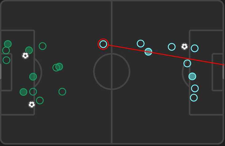 Вот карта ударов. Мэйсон Гринвуд пробовал со своей половины, Игор Пайшао и Пьер-Эмиль Хейбьерг – вблизи центрального полукруга.