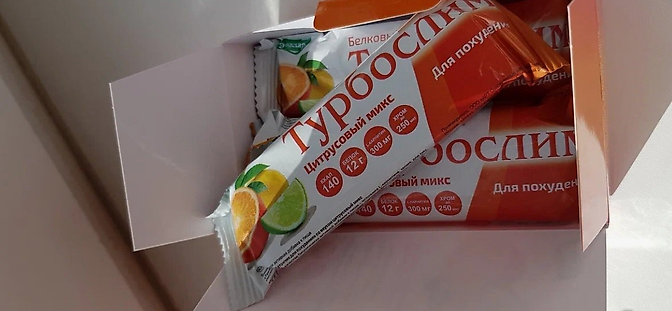 В качестве примера можно рассмотреть батончик «Турбослим Молочный протеин» от компании «Эвалар». Его энергетическая ценность составляет всего 110 килокалорий, при этом в составе присутствуют полезный молочный белок, L-карнитин, пиколинат хрома, а также экстракты гарцинии и зеленого чая.