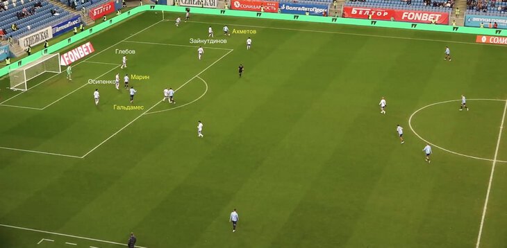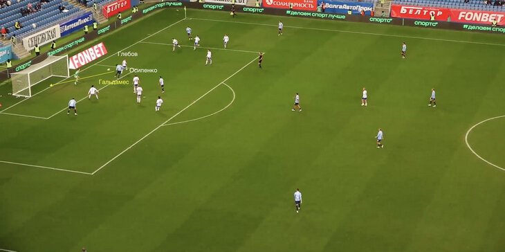 В штрафной Осипенко играл по Джимми Марину, а Томас Гальдамес был один нескольких секунд. Ахметов перебросил Глебова, располагавшегося на ближнем углу вратарской, а Осипенко даже в последний момент не переключился на одинокого Гальдамеса.