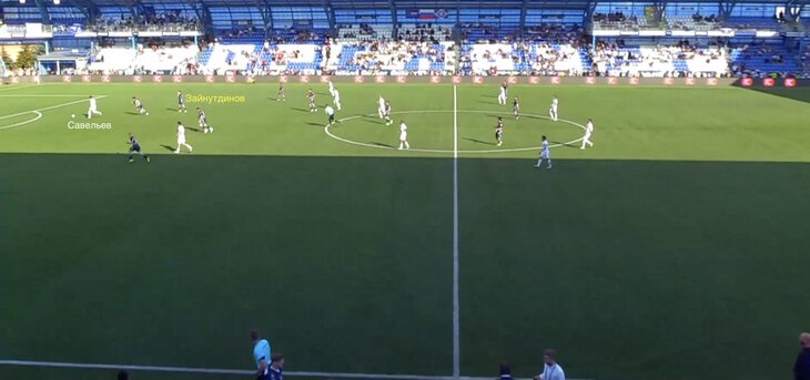 Сильянов продвинулся до центральной линии и отдал пас на Воробьева, который ворвался в зону, оставленную Зайнутдиновым.