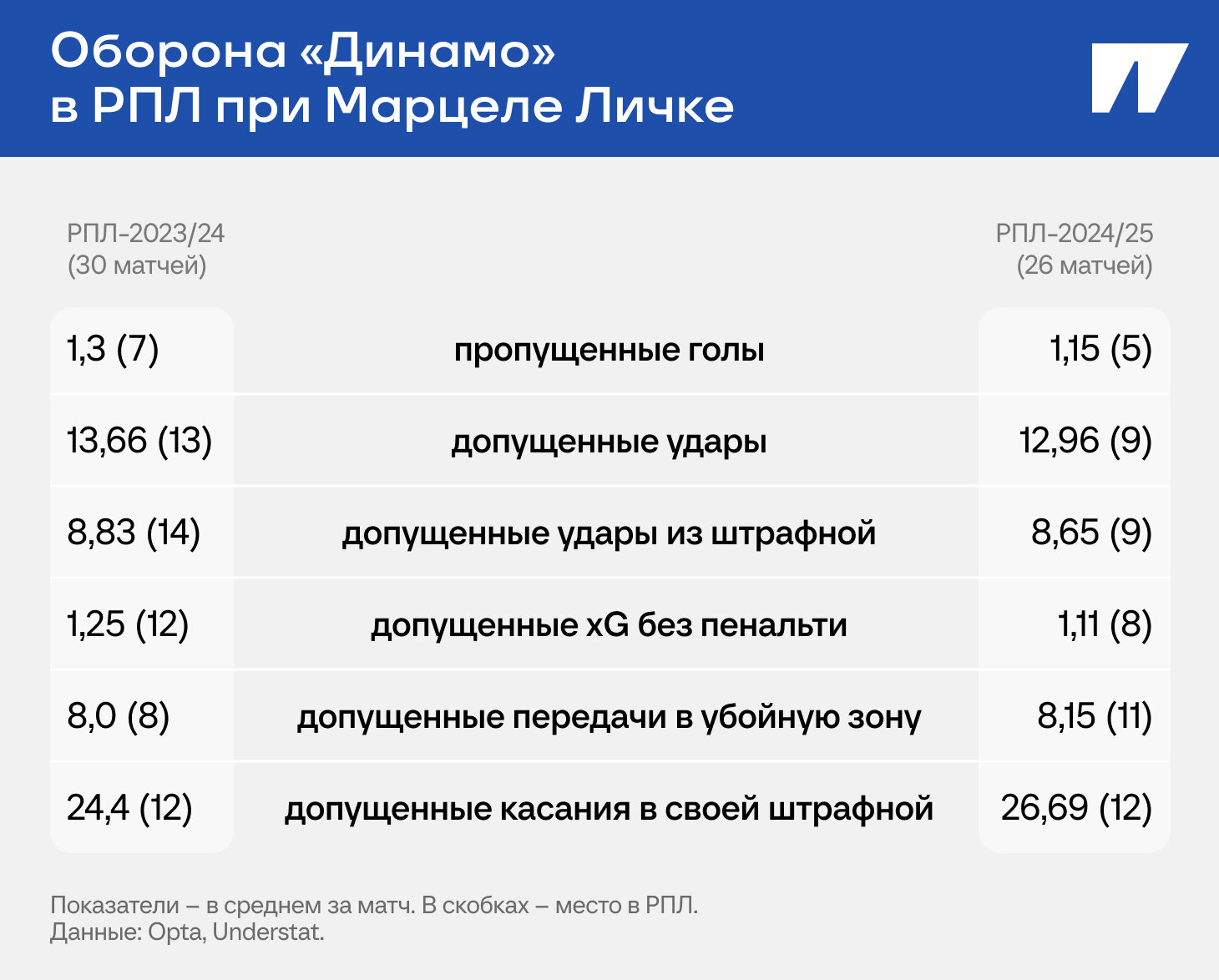 При высокой линии обороны и желании много играть с мячом «Динамо», как и при Личке, в том числе важна игра 1-в-1 сзади. Пока защитники «Динамо» часто проигрывают ключевые эпизоды, действуя не очень рационально.