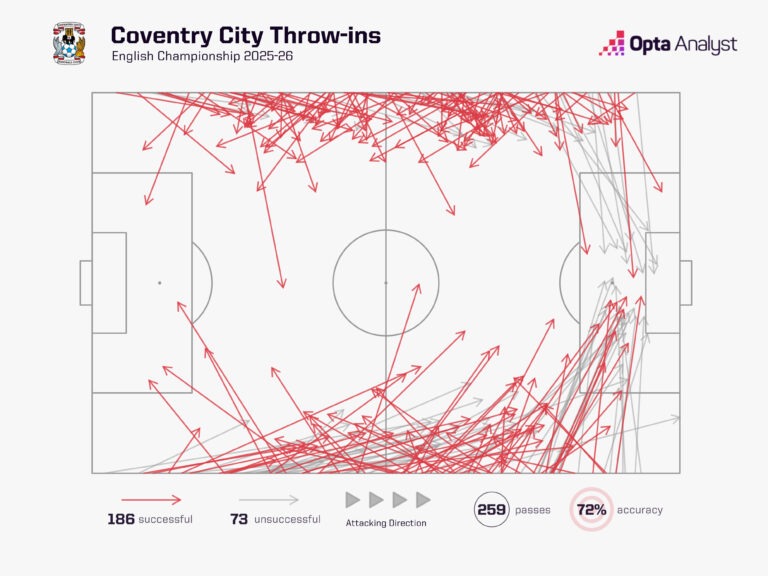 В футболе Лэмпарда чувствуется прагматизм, что закономерно отразилось на его подходе к стандартным положениям. Только «Оксфорд Юнайтед» (47) выполнил больше длинных вбрасываний в чужую штрафную, чем «Ковентри» (42), при этом команда явно уделила серьезное внимание и схеме розыгрыша угловых.