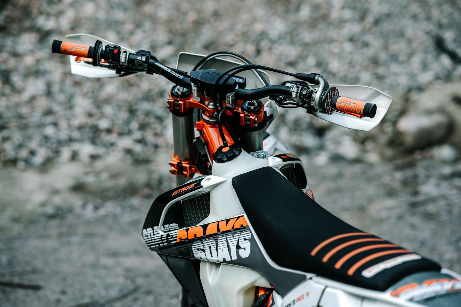 Подвеска у таких байков ничуть не проще, чем у кроссовых собратьев. Ходы амортизаторов достигают 270–290 мм, вилка перевернутого типа, сзади — регулируемый моноамортизатор. Колеса 21/18 дюймов с агрессивным протектором дают уверенность на грязи и камнях.