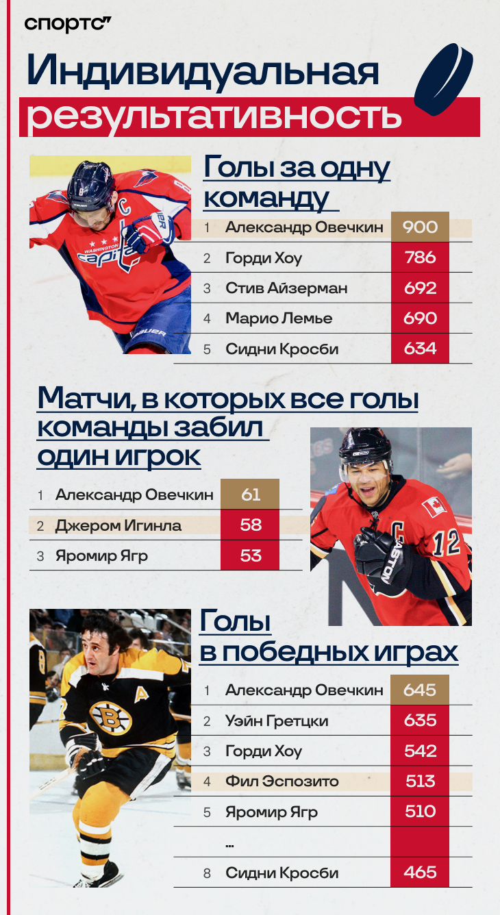 После того, как Александр побил рекорд Уэйна Гретцки, у него уже не оставалось крупных ориентиров. Теперь Ови создает их сам: кроме него, ни одному игроку в истории не удалось пробить отметку в 900 шайб – в этом избранного клубе он один. И надолго.