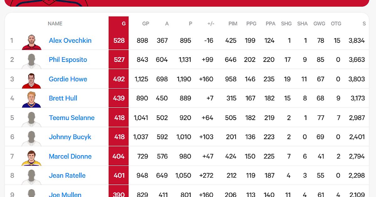 Первые две шайбы Овечкина в новом сезоне – и сразу рекорд! Саня сначала сравнялся с легендарным Филом Эспозито по количеству голов в возрастной категории 27+, а затем и превзошел его. Категории 27+ и 28+ примечательна тем, что как раз в этом возрасте произошел коренной перелом в исторической борьбе Овечкина и Греца за главный рекорд лиги. Вашему вниманию список лучших снайперов в возрасте 27+.