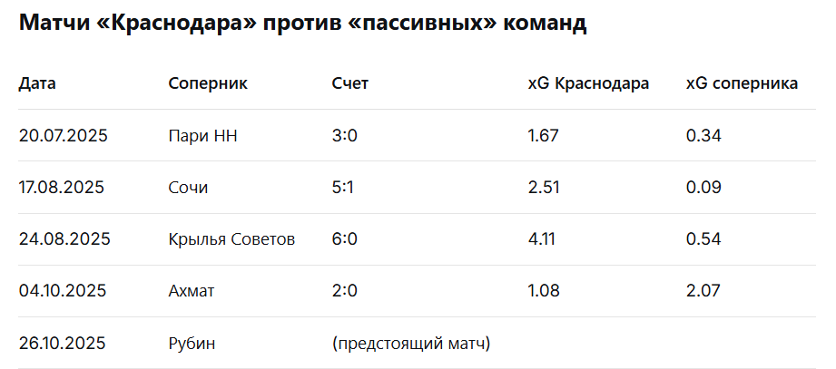 - «Краснодар» демонстрирует исключительную эффективность против «пассивных» команд