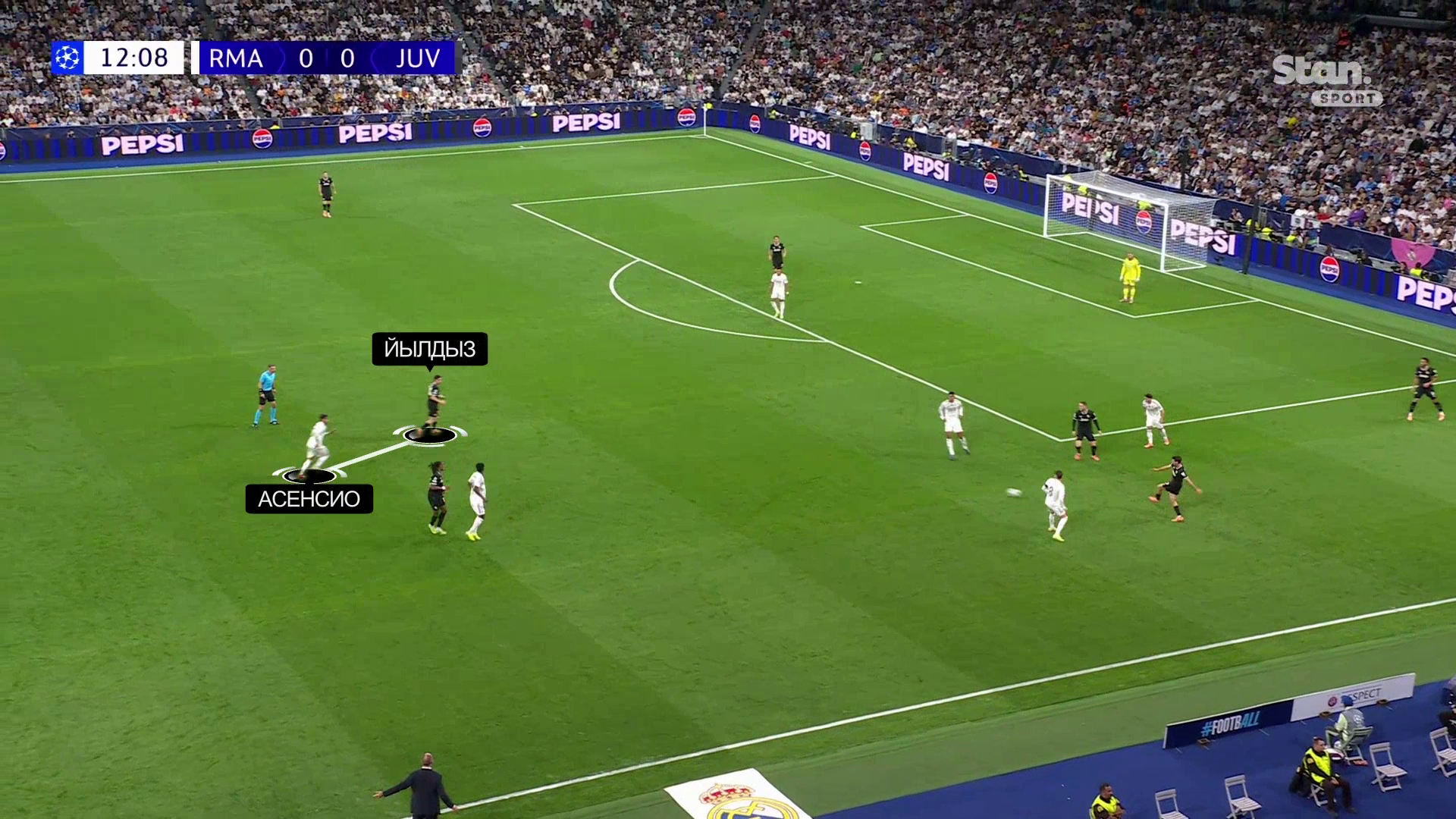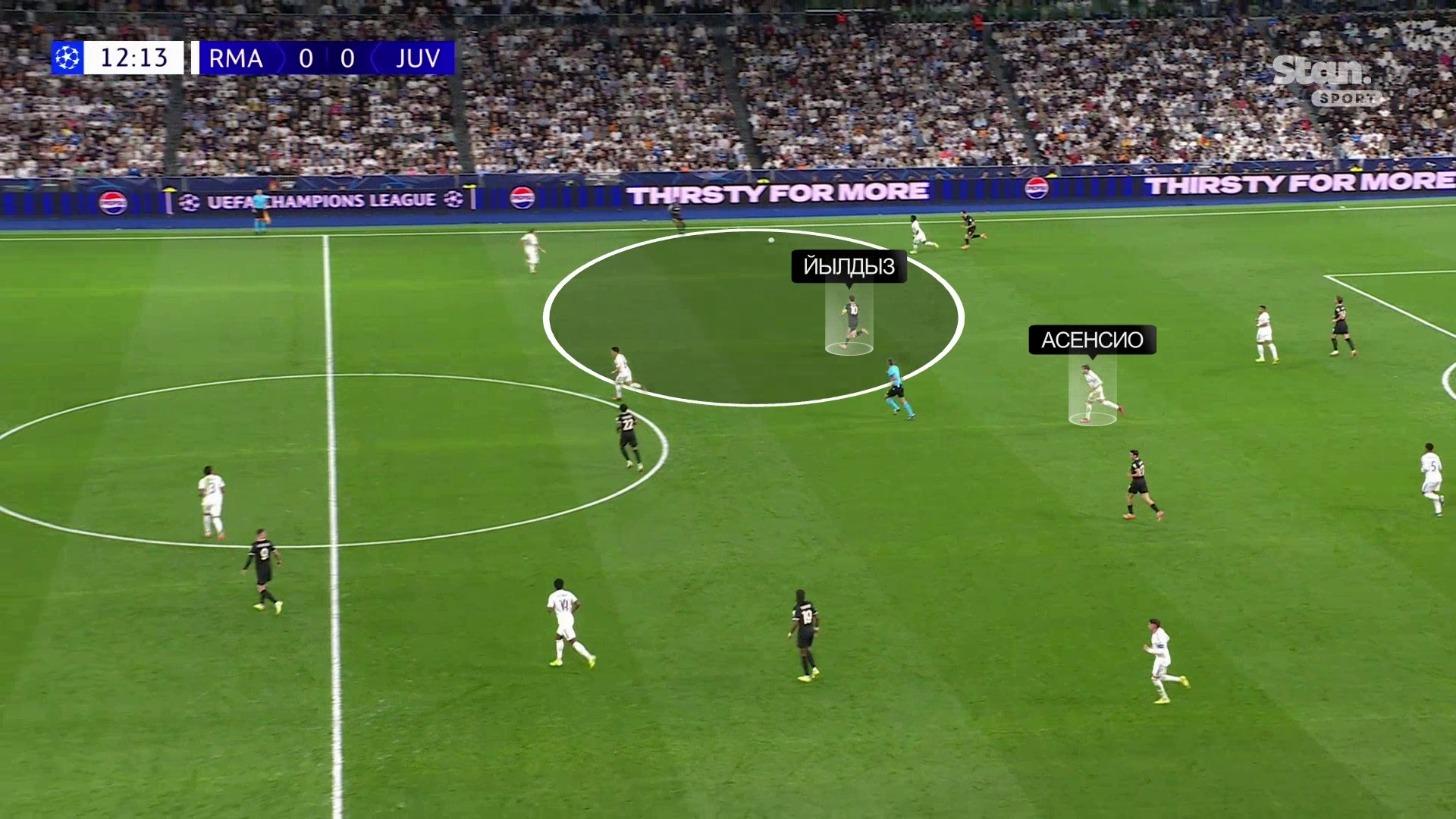 Вот свежий пример сбоя. Из-за персоналок центральный защитник Рауль Асенсио идет за Кенаном Йылдызом до чужой опорной: