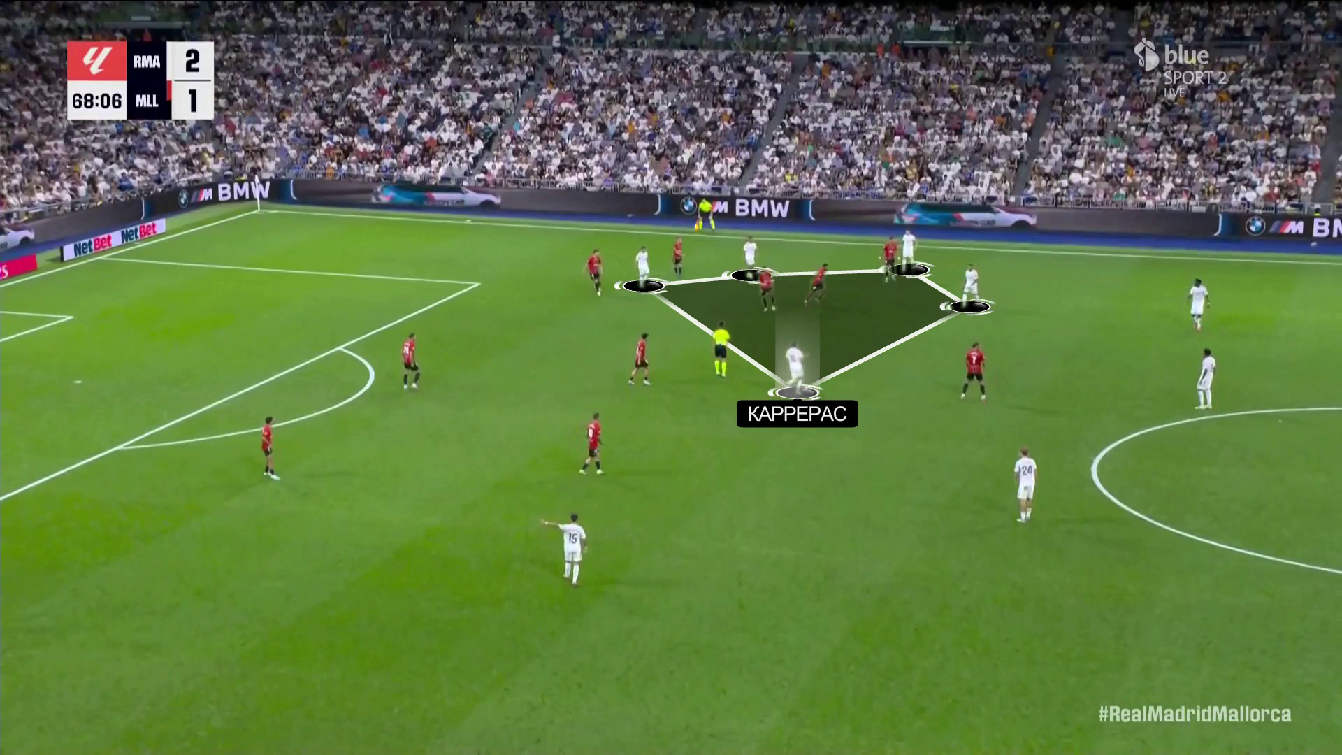 Матчи «Реала» можно разделить на две категории – удалось навязать свой рисунок и не удалось. Рисунок предполагает контроль, высокую точность передач и готовность к потере за счет выбора моментов для обострений. В этом рисунке «Мадрид» подавляет попытки прессинга соперника (если они были) и в полной степени управляет ритмом.
