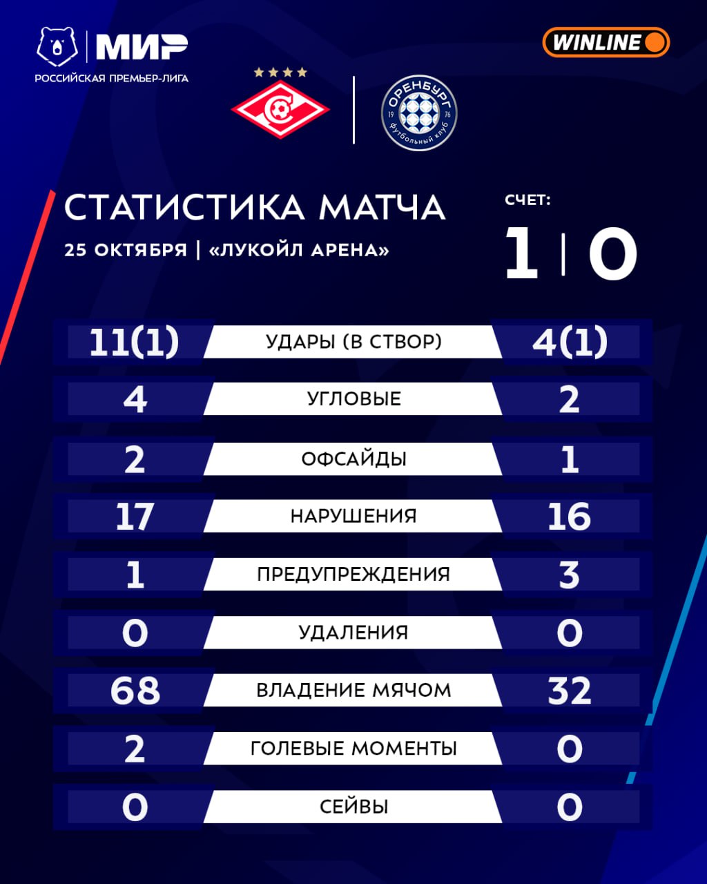 «Спартак» предсказуемо с самого начала встречи взял мяч под контроль. К концу тайма процент владения пробил 65. Но гости были к этому готовы. Они приняли установленные правила и рассчитывали искать шансы на контратаках. Главное наблюдение первых 45 минут – темп игры. «Спартак», хоть и использовал всех лидеров в атакующей линии, действовал впереди уж очень медленно. «Оренбург» без особых проблем успевал перестраиваться при обороне и, по сути, никого не оставлял без страховки. Отсюда – минимум опасных моментов.