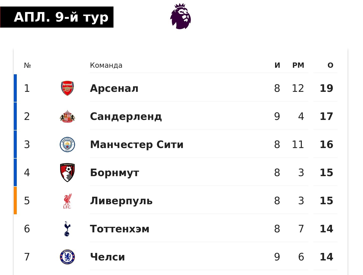 «Челси» в следующем туре встретится с «Тоттенхэмом», прямо сейчас они тоже соседи, но команда Томаса Франка еще сыграет свой девятый матч. «Сандерленд» 3 ноября примет «Эвертон».