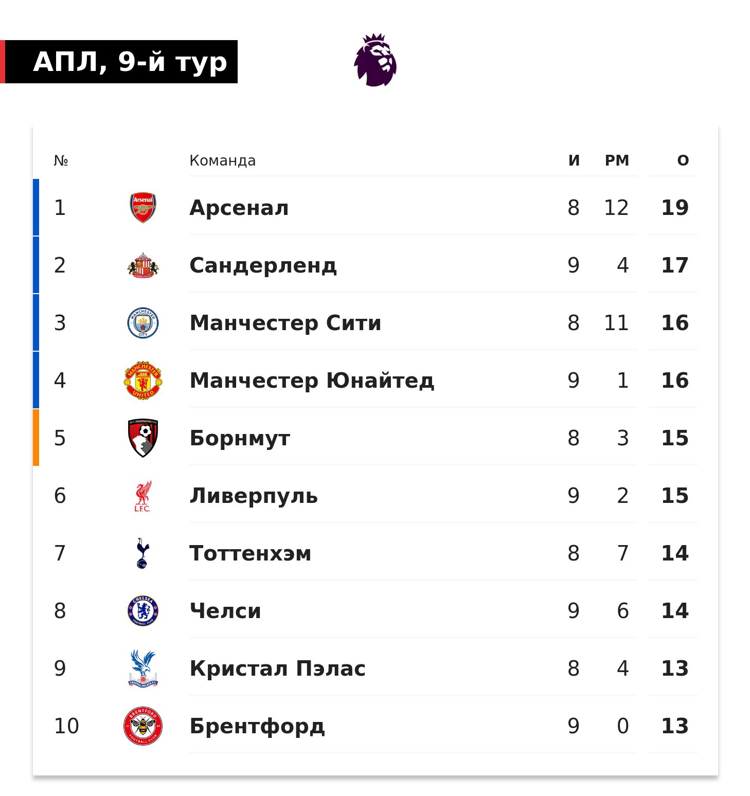 Таблица АПЛ теперь выглядит так. «Ливерпуль» уже на семь очков по потерянным отстает от «Арсенала» и рискует оказаться ниже даже шестого места. Кстати, теперь Opta оценивает возможное чемпионство в сезоне-2025/26 только в 13,8%.