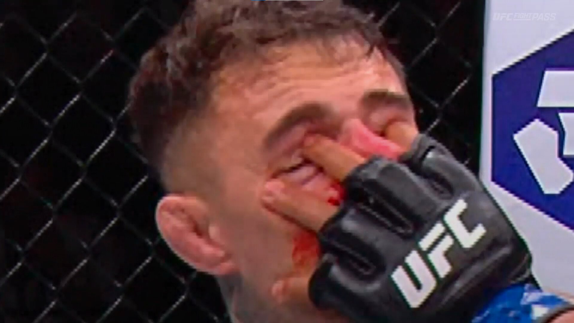 Но за 30 секунд до конца раунда поединок остановили. Ган пробил миддл-кик левой ногой и, чтобы не получить контратаку, вытянул руку в лицо соперника. Получилось так, что оба его пальца зашли прямо в глаза Аспиналла. Выглядит ужасно.