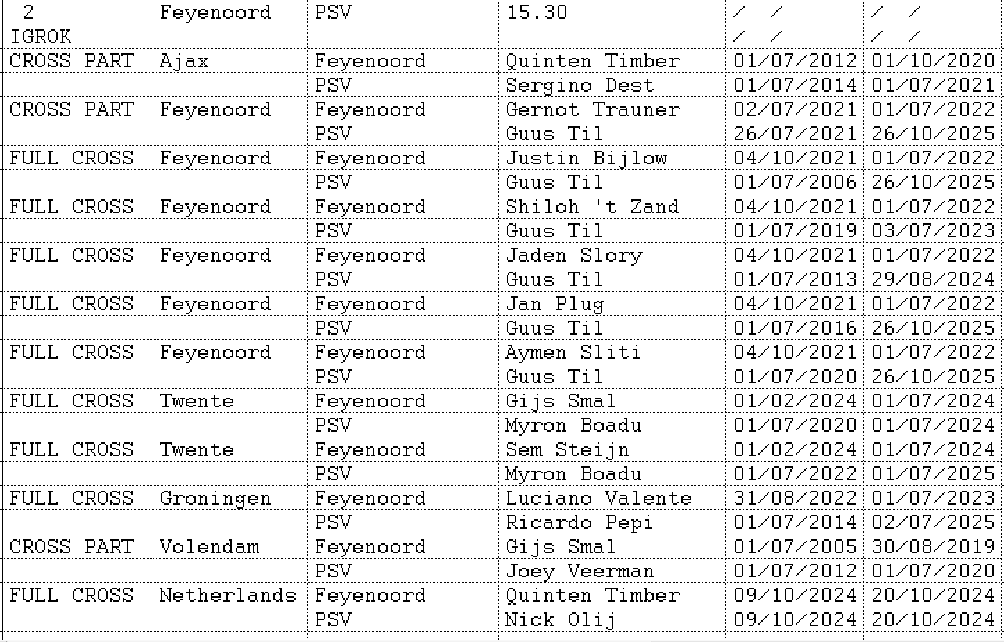 3.Соперники играли за один и тот же клуб (возможно в разное время- NO CROSS)