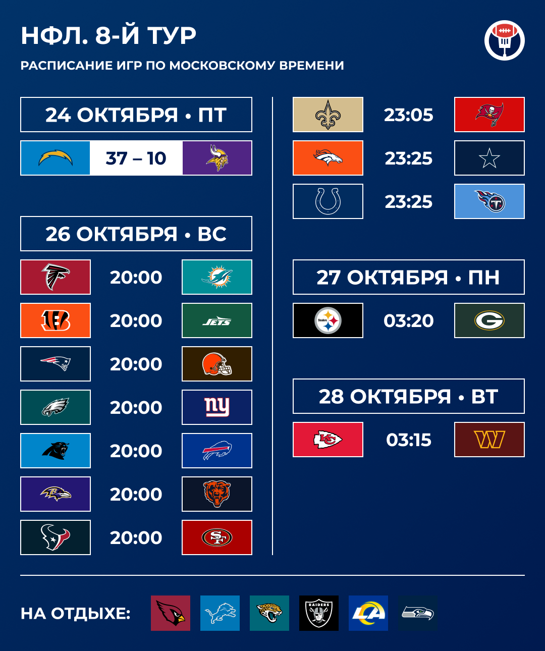 Уже прошло достаточно времени со старта регулярки, чтобы мы мысленно отбрасывали нерелевантные результаты начала-середины сентября. Какая разница, сколько матчей проиграли «Джайентс» с Расселлом Уилсоном в роли стартового квотербека и без Кэма Скэттебу в бэкфилде? Мое простое правило при оценке нынешней формы команд — учитывай только четыре последних результата.