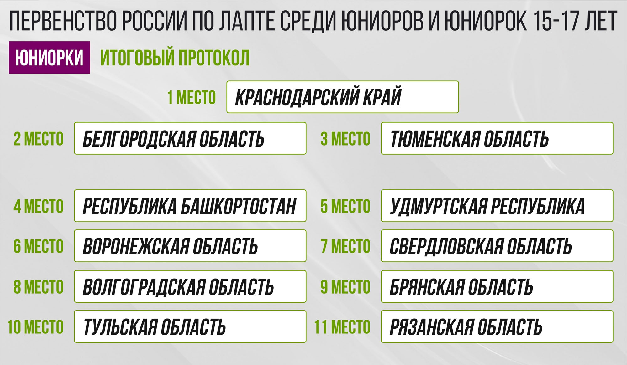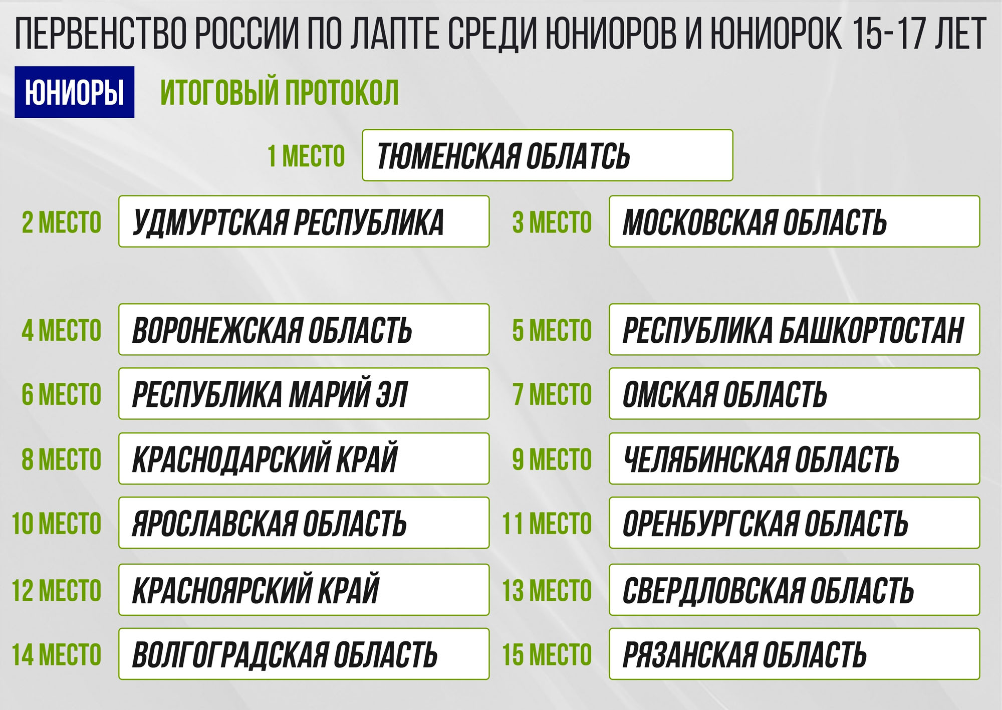ФРЛР опубликовала итоги юниорского первенства России