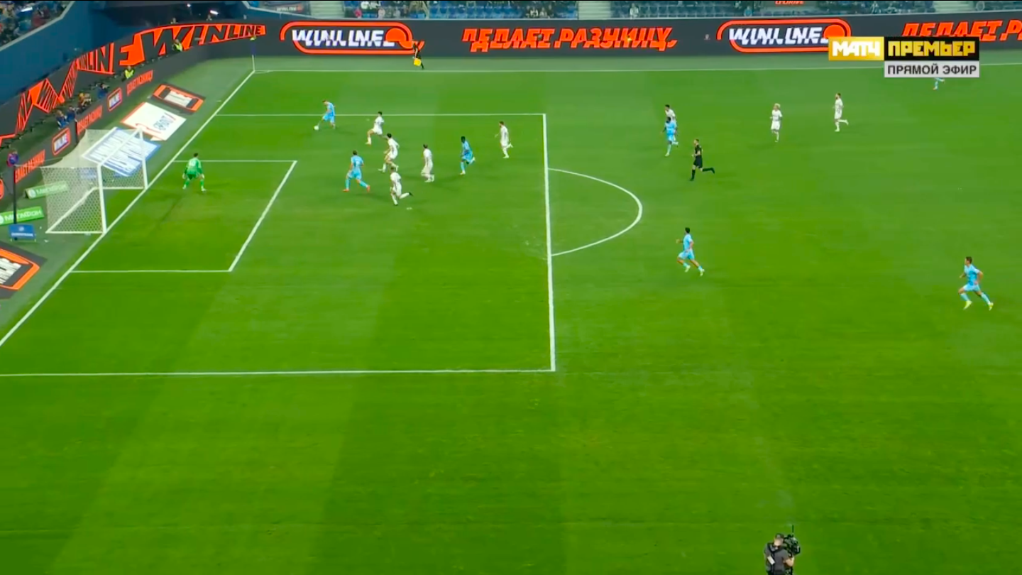 Вендел идеально запустил Максима Глушенкова по флангу. Без офсайда, с хорошим запасом.