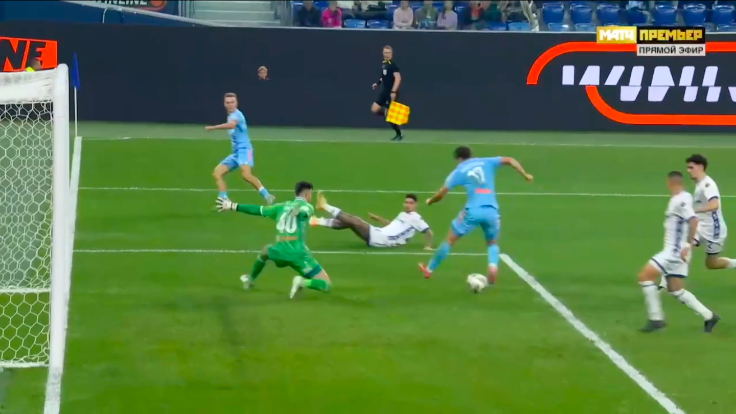 Зенитовец настаивал, что на нем фолили – но в итоге гол динамовцев засчитали. Пришлось сравнивать – получилось очень красиво.