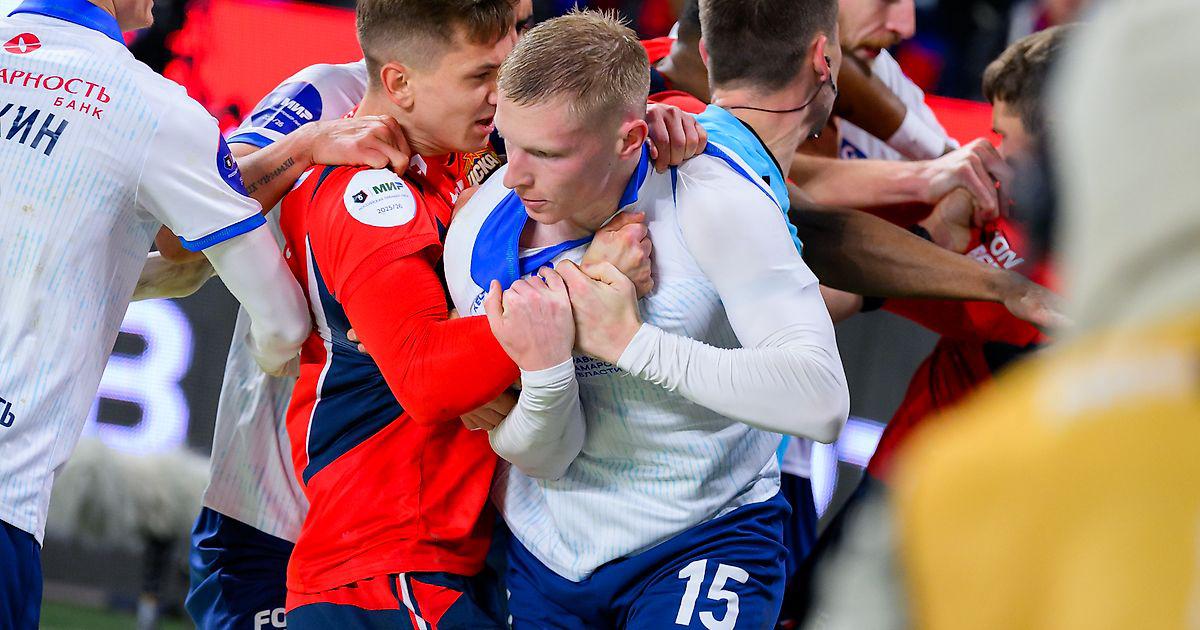 Во время матча Глебов запрыгнул на плечи Рассказову, после чего защитник «Крыльев» уложил футболиста армейцев на газон.