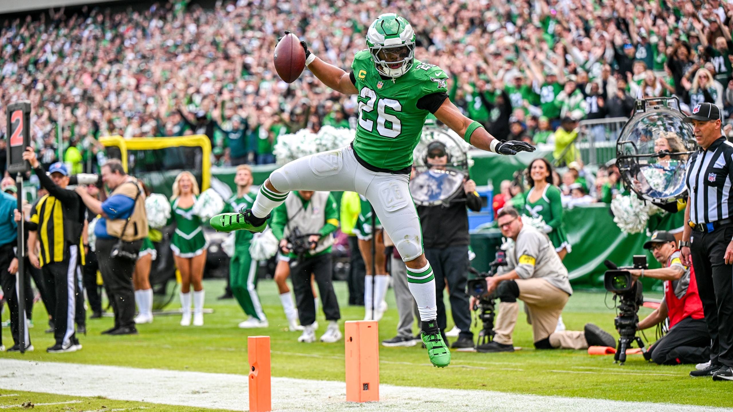 Встреча началась и случилось то, что все ждали с самого начала сезона. Сэйкуон Баркли пробудился от духовного и физического полусна. В дебюте матча раннинбек «Иглз» совершил 65-ярдовый забег, сходу достигнув зачетки гостей и красуясь там в классическом комплекте формы Kelly Green. Перед матчем Баркли донимали вопросами о его низкой результативности. Бегущий не стал сетовать ни на плейбук, ни на игру своей линии нападения, а, неловко отшутившись, пообещал показать свой уровень. Получилось внушительно.