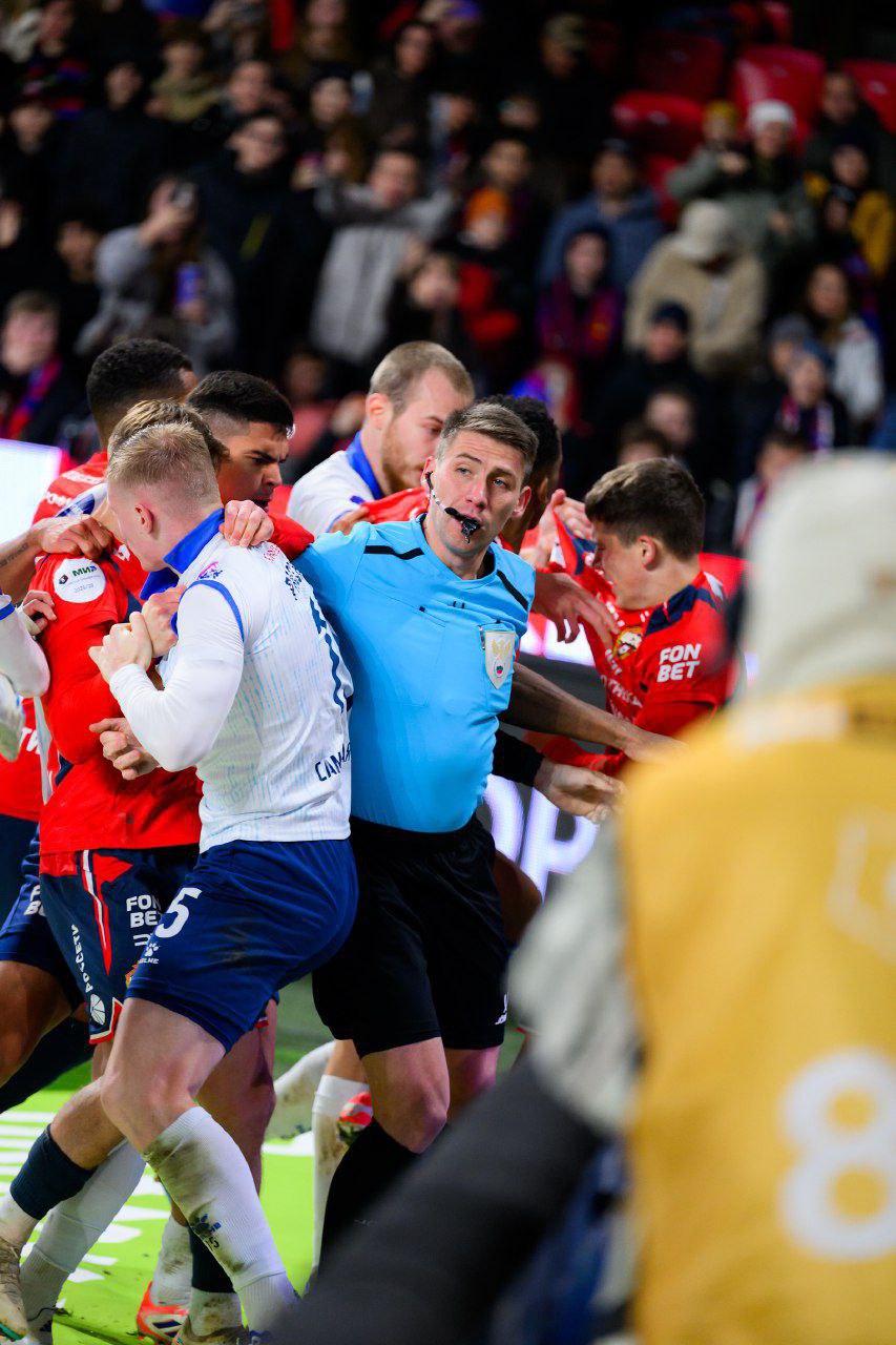 Я очень устал за первый тайм не столько от тяжелых попыток ЦСКА что-либо создать, сколько от тупорылой грубости игроков «Крыльев». Да даже не так. От тупорылого поведения судей в поле и на ВАРе. Я понимаю, арбитр задает планку единоборств, которую должны ощутить команды, но всему есть предел! Прямой поднятой ногой, шипами, в колено Облякову! Ребята, на таких фолах все равно, что он сначала в мяч сыграл, это опасная игра, возможность нанести травму, такие вещи наказываются желтой! Фол этот совершал Бабкин.