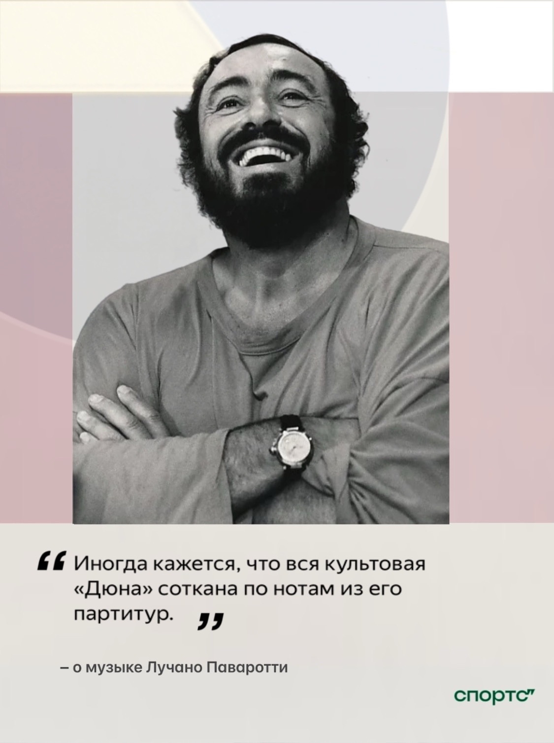 По прежнему восхищаюсь Лучано Поворотти — невероятным тенором, его голос cловно восхождение из глубин космоса то, что останется навсегда. Иногда кажется, что вся культовая «Дюна» соткана по нотам из его партитур. Думаю, что значение повести Фрэнка Гелберта оказали сильнейшее воздействие на его манеру выстраивать музыкальную архитектуру — звонкую, лихую, когда мельчайшие движения на лице тоже поют, страдают и возрождаются из небытия сразу в античную драму.