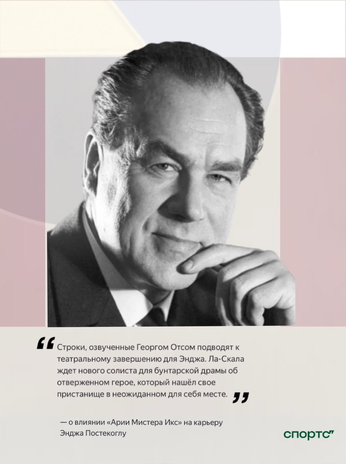 В детстве и сейчас часто переслушиваю песни Георга Отса, советского артиста и оперного исполнителя. Его главное произведение это «Ария Мистера Икс», великий саундтрек к советскому блокбастеру тех лет «Принцесса Цирка». Удивительно, как музыка способна нарисовать четкую линию, которая жирным шрифтом подчеркнет большое повествование. Театральное завершение для Энджа получается легким. Ла-Скала ждет нового солиста для бунтарской драмы об отверженном герое, который свое пристанище в неожиданном для себя месте.