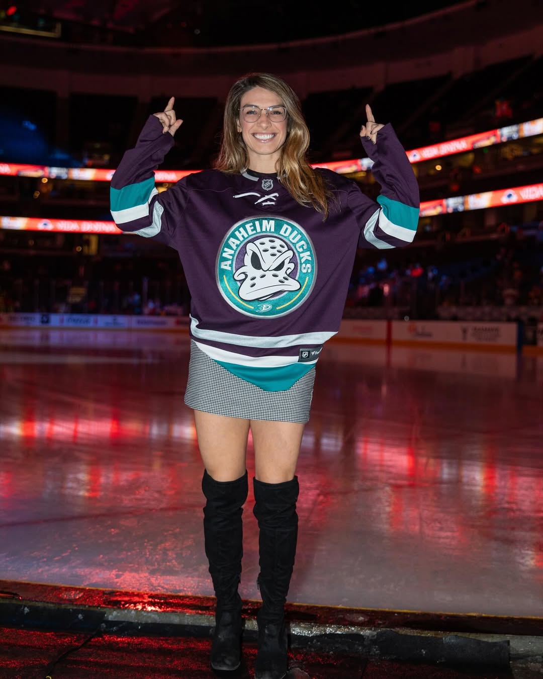А в свободное от приседаний время девушка болеет за «Анахайм Дакс»!