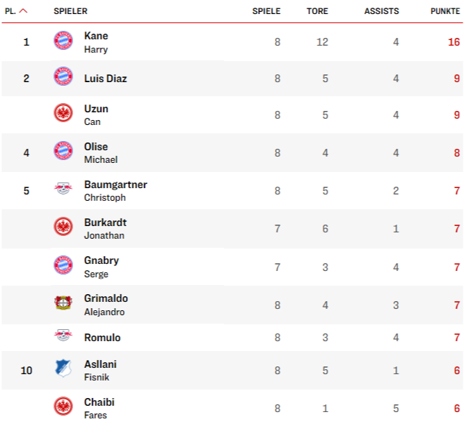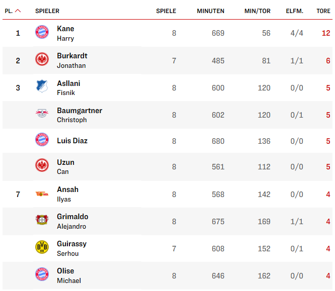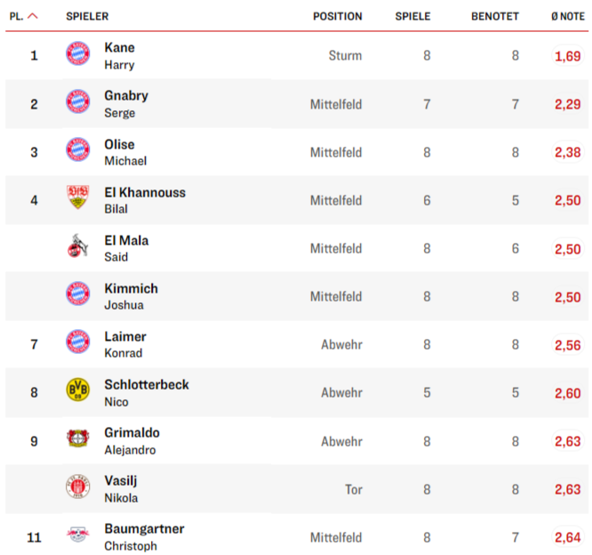 После международного перерыва вдвойне раскрылся уже упомянутый Баумгартнер. Дубль «Гамбургу» (2:1), гол+пас против «Аугсбурга» (6:0), дубль в Кубке Германии против «Энерги» (4:1) — итого шесть результативных действий в трех последних играх. На сегодня больше австрийца в Бундеслиге забили только неугомонный Харри Кейн и Йонатан Буркардт из «Айнтрахта».